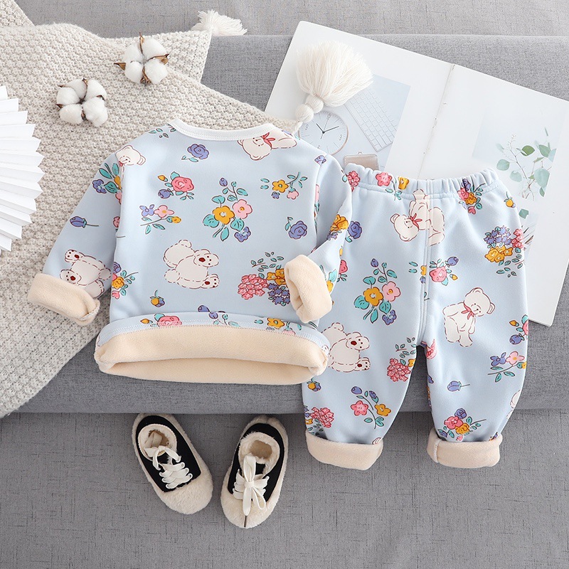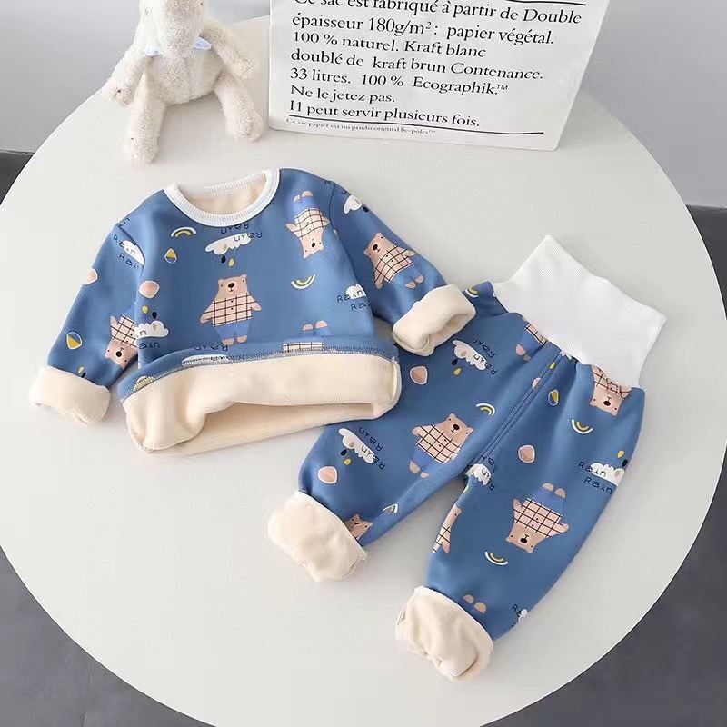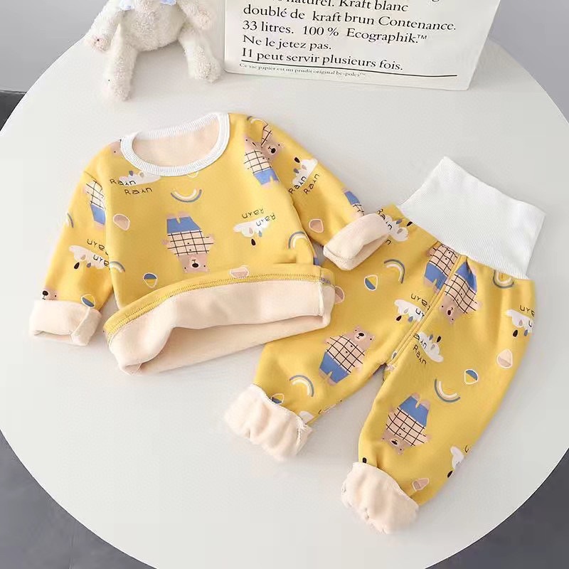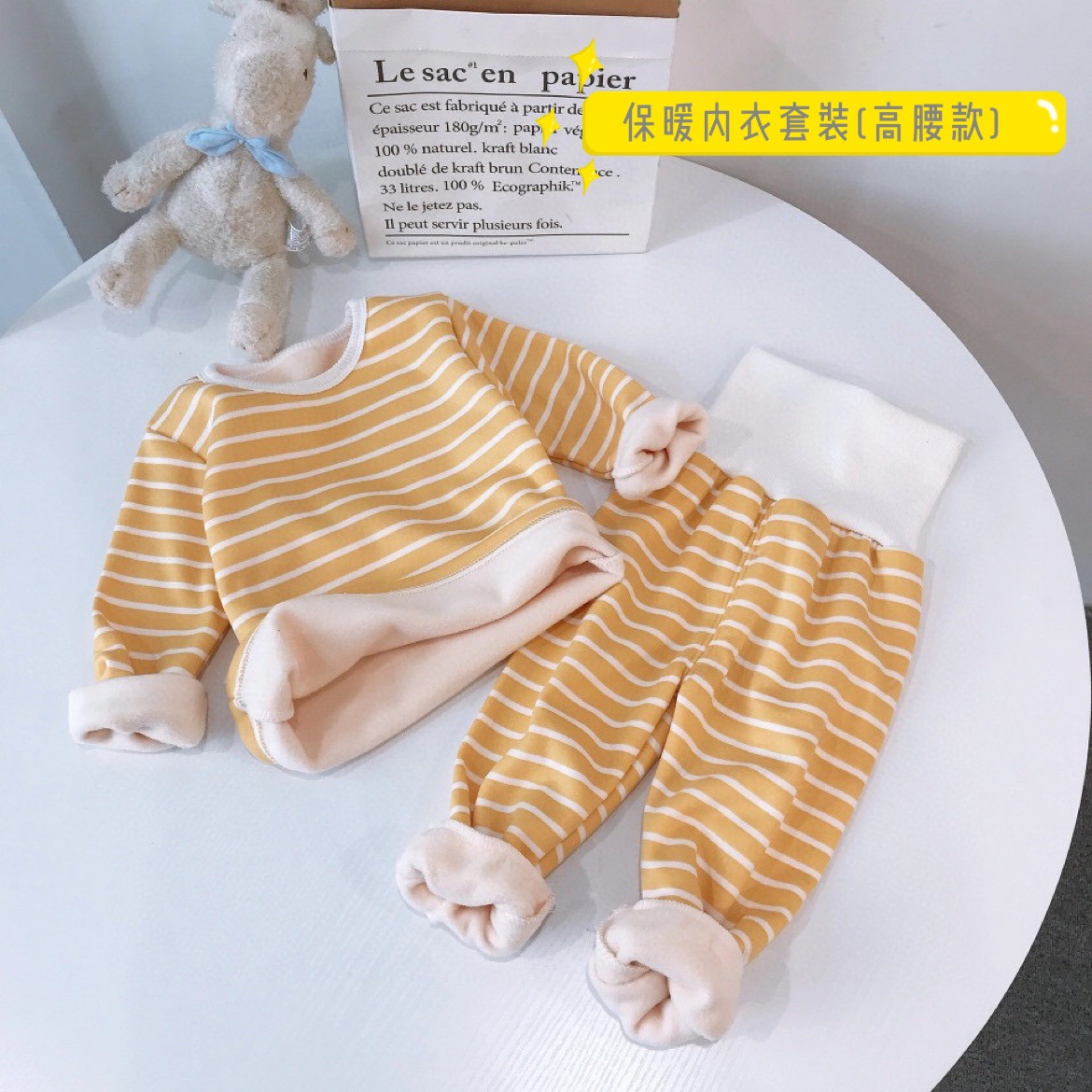 우송료 어린이 열 속옷 세트 겨울 줄무늬 가정 옷 하이 허리 배꼽 잠옷 2 종 세트