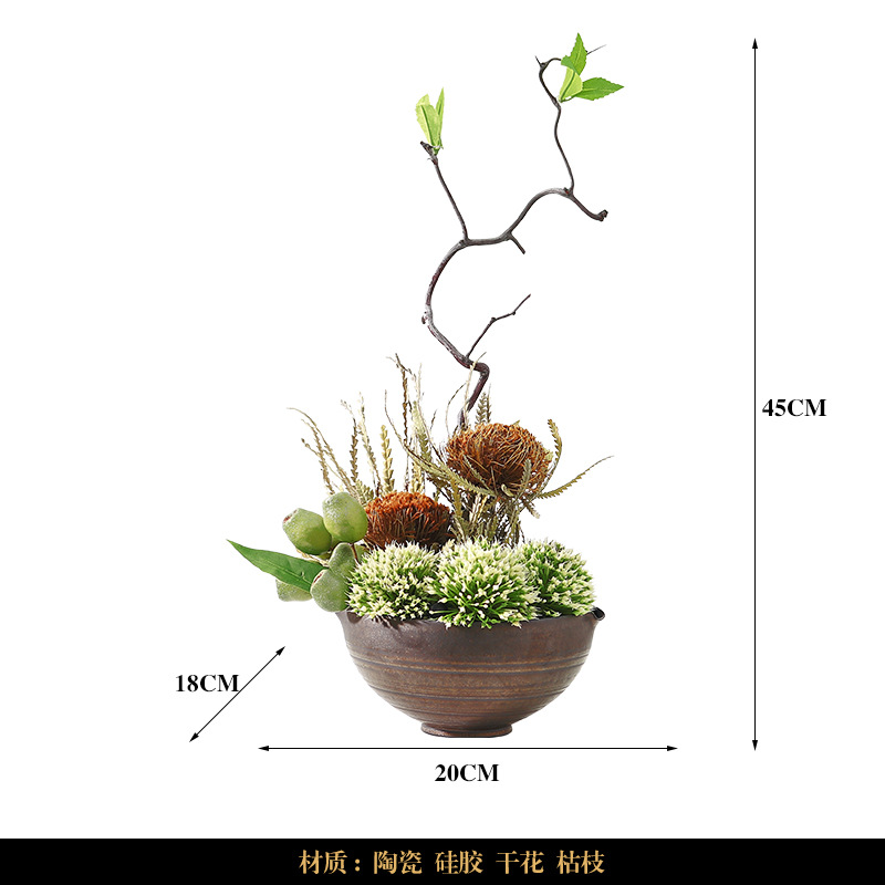 새로운 중국 스타일 말린 꽃 죽은 가지 작은 탑 시뮬레이션 꽃 분재 모델 룸 사무실 찻집 입구 부드러운 장식