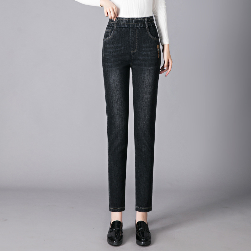 기모 따뜻한 Harlan 바지 여성의 가을과 겨울 2022 새로운 한국 스타일 하이 웨이스트 느슨한 슬리밍 청바지 스트레치 바지