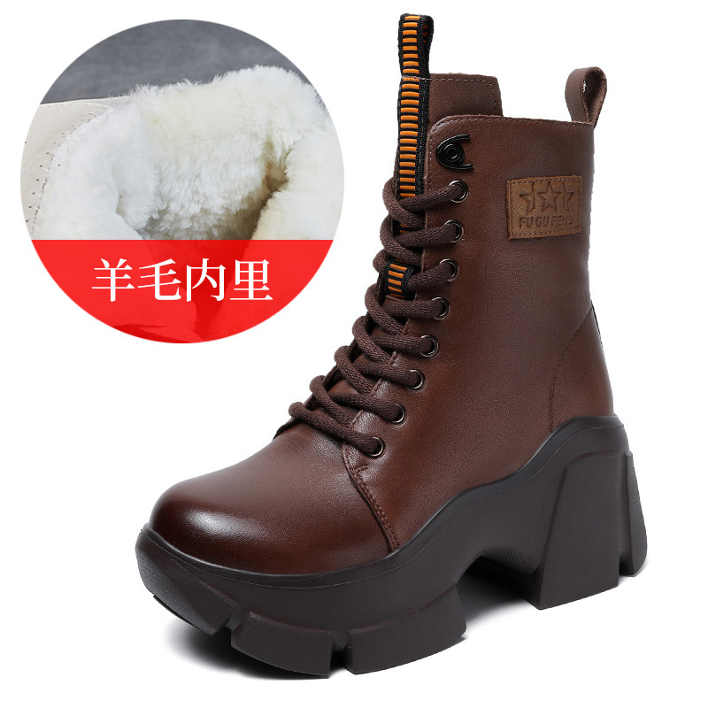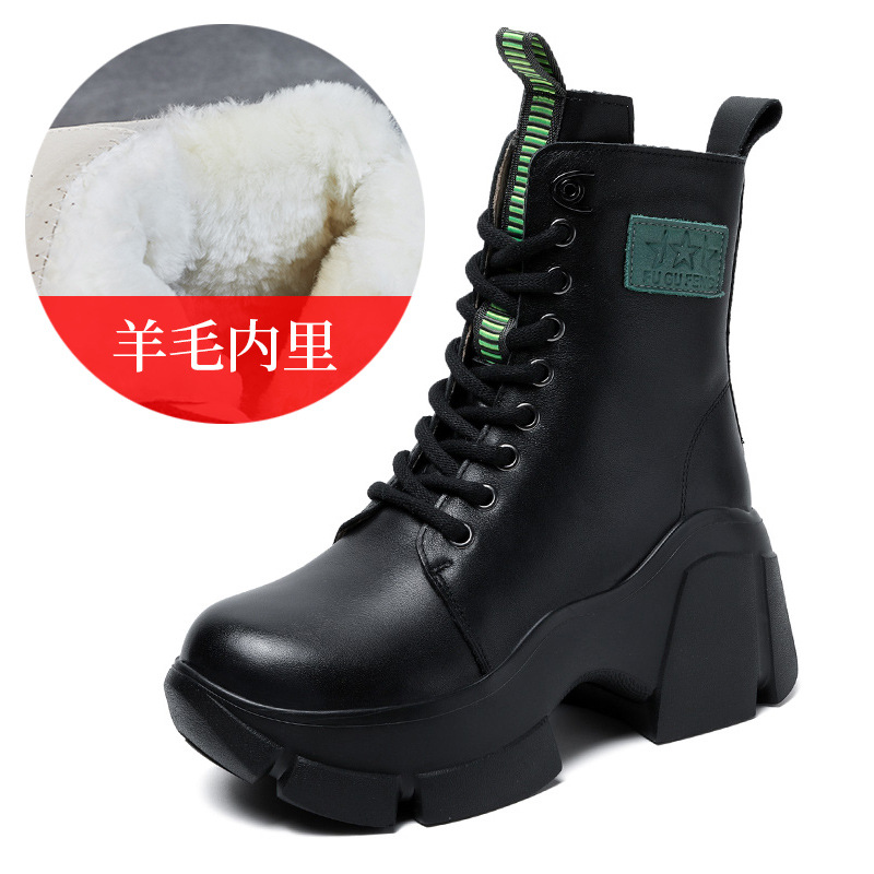 슬리밍 하이힐 부츠 여성용 2022 새로운 가을/겨울 기모 작은 높이 플랫폼 신발 정품 가죽 두꺼운 밑창 마틴 부츠