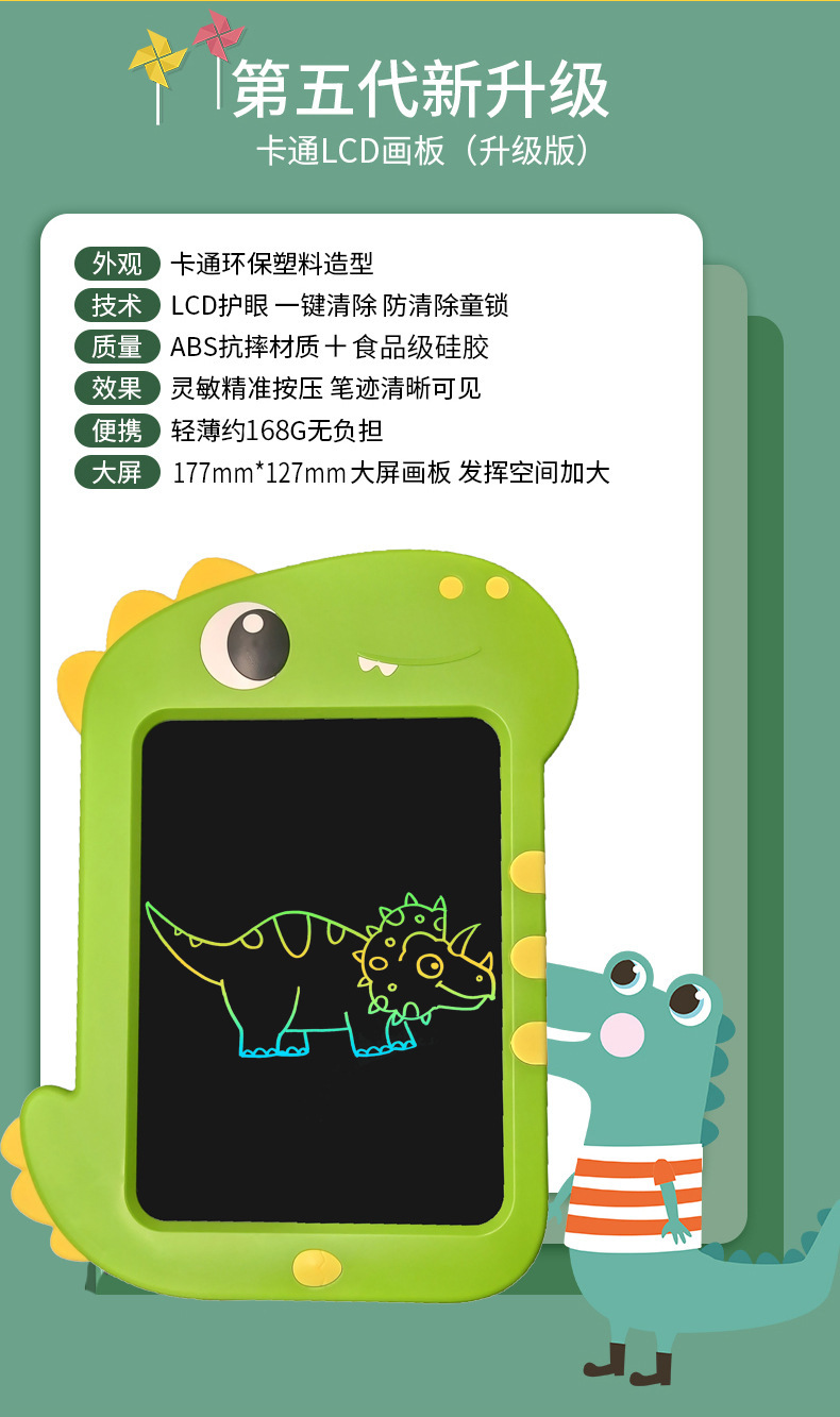 새로운 만화 LCD 필기 보드 9 인치 컬러 스크린 공룡 지능형 필기 그림 낙서 조기 교육 소형 칠판 도매