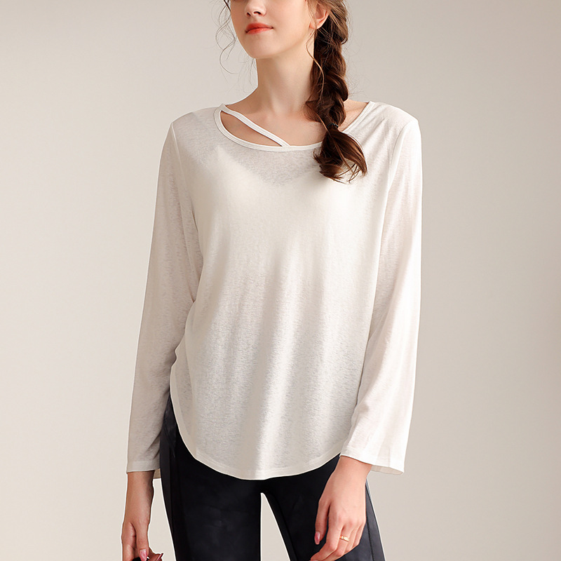 텐셀 눈송이 느슨한 통기성 요가웨어 블라우스 여성 캐주얼 러닝 스포츠 탑 긴 소매 피트니스웨어 티셔츠