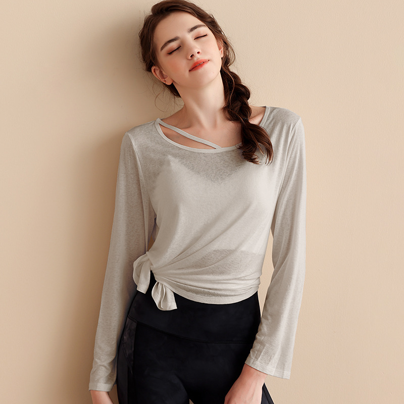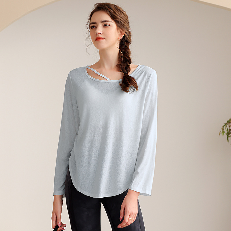 텐셀 눈송이 느슨한 통기성 요가웨어 블라우스 여성 캐주얼 러닝 스포츠 탑 긴 소매 피트니스웨어 티셔츠스토어 가기