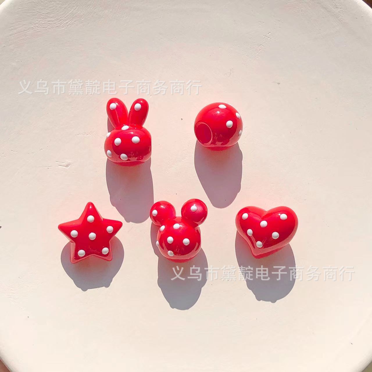 빨간 기름 떨어지는 도트 다시 구멍 구슬 DIY 수제 보석 아크릴 느슨한 구슬 구슬 머리 장식 고무 밴드 액세서리스토어 가기