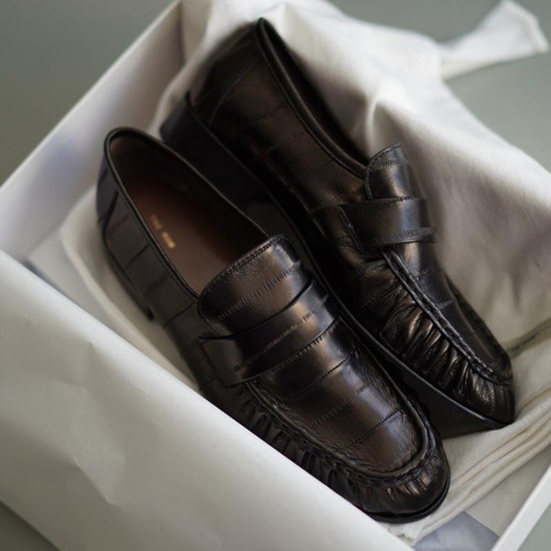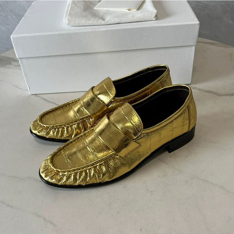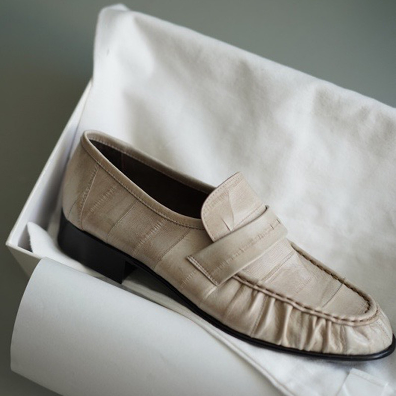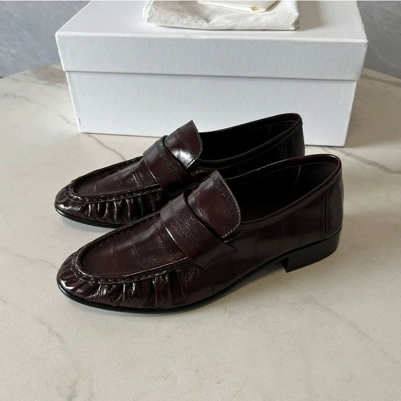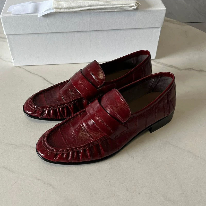 The*Row 장어 가죽 레트로 주름 캐주얼 플랫 슈즈 통근용 로퍼 여성용 편안한 가죽 신발스토어 가기