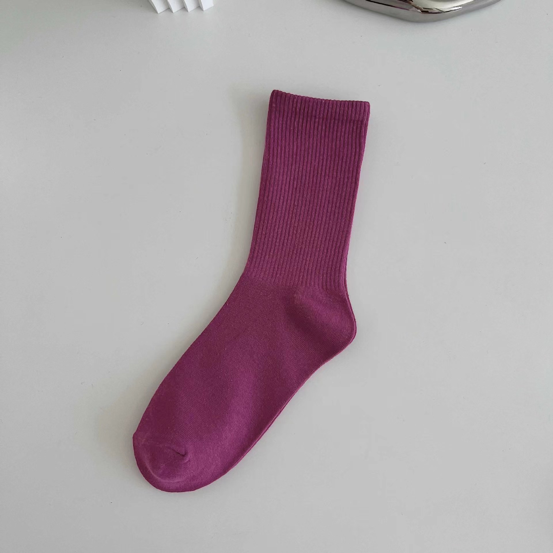 봄과 가을 컬러 양말 패션 캔디 컬러 면화 양말 가을과 겨울 흑백 회색 면화 스타킹 도매스토어 가기