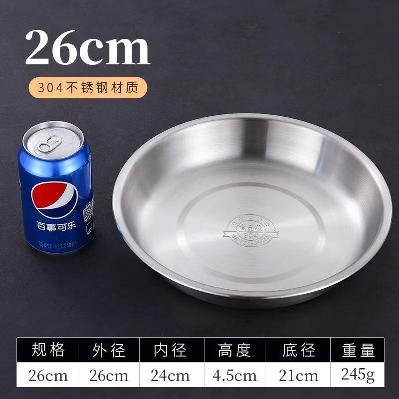 304 스테인레스 스틸 플레이트 디스크 접시 디너 플레이트 두꺼운 가정용 주방 식품 학년 접시 수프 접시 식기스토어 가기