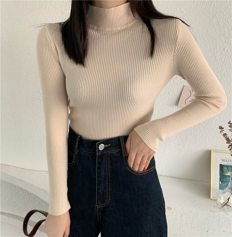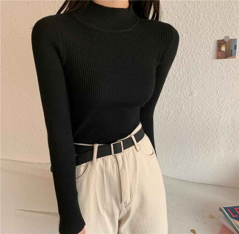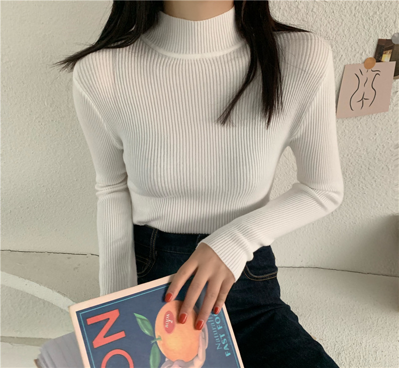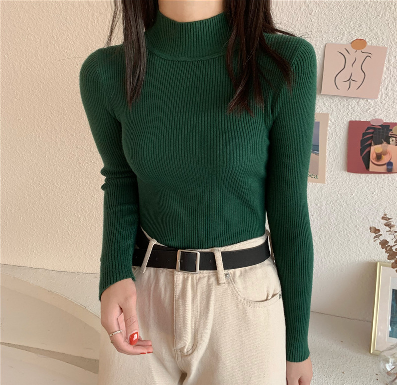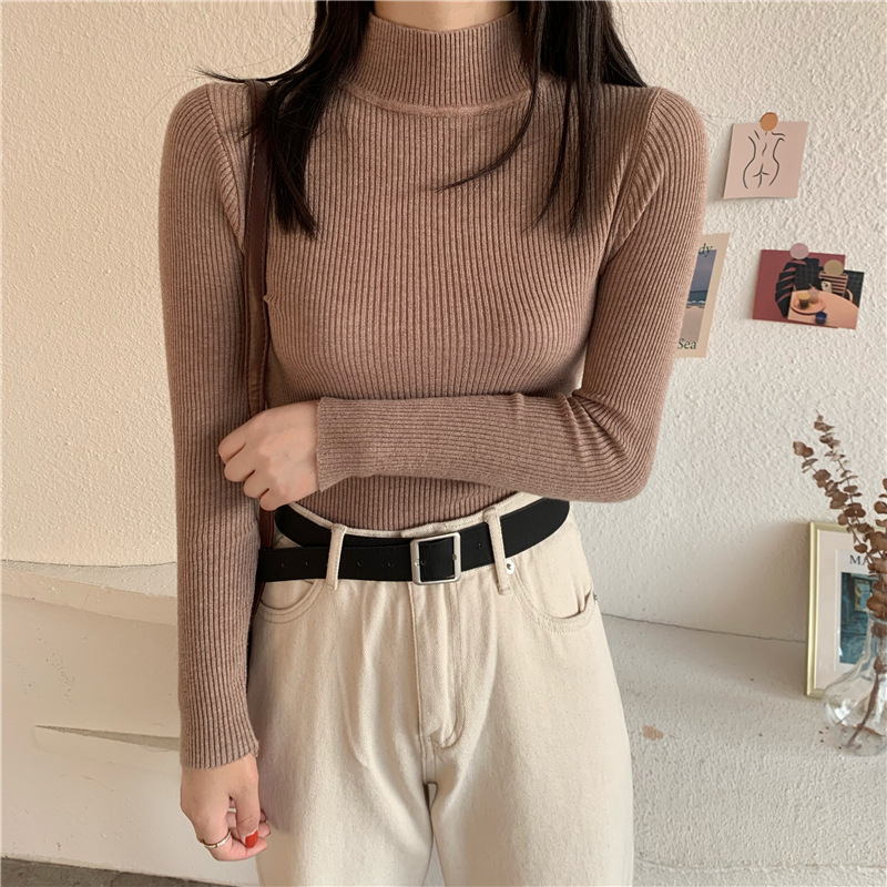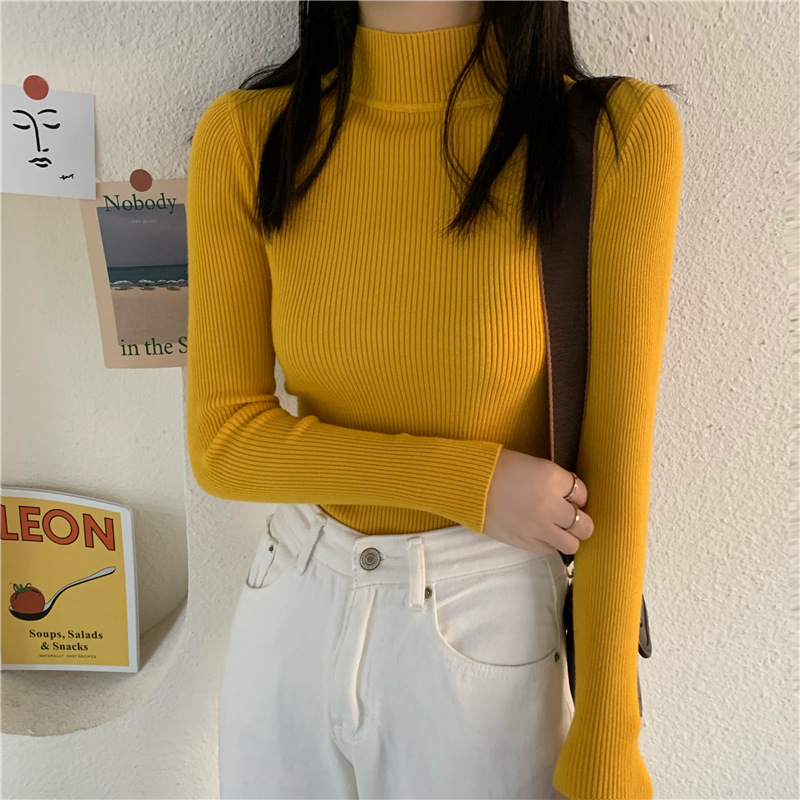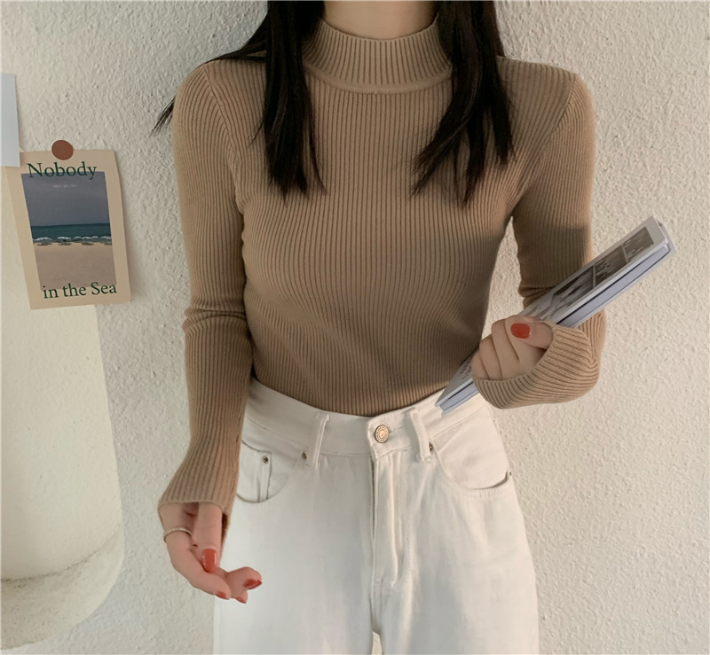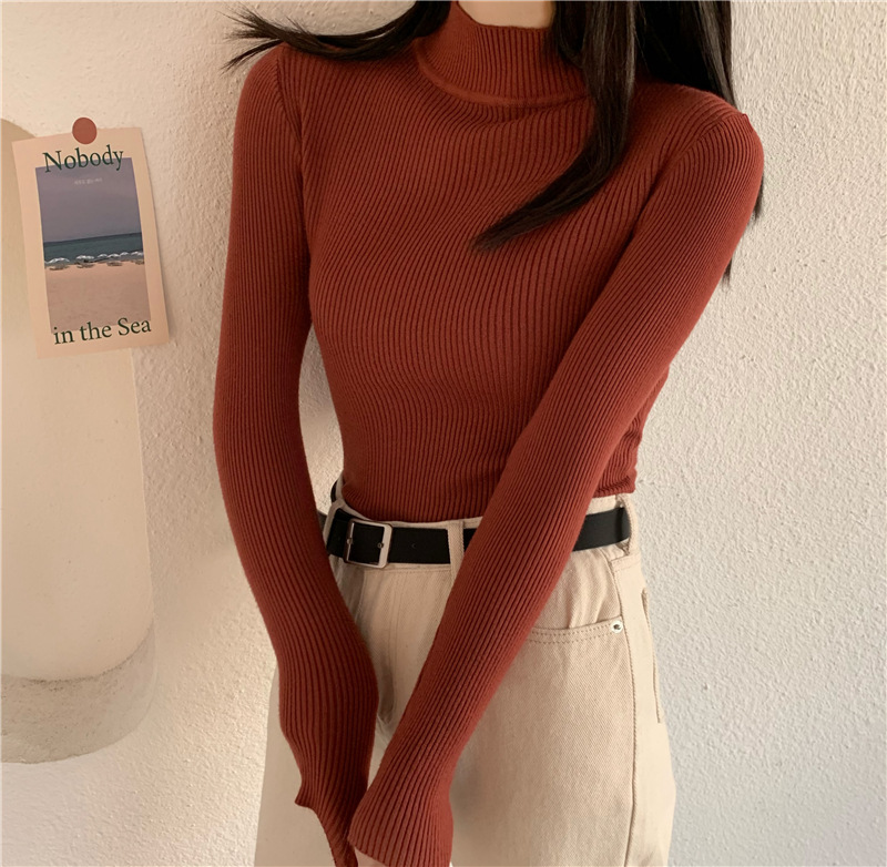 가을 스웨터 여성 올해의 새로운 인기 2022 하프 하이 칼라 긴 소매 이너베이스 셔츠 디자인 감각 짧은 탑스토어 가기
