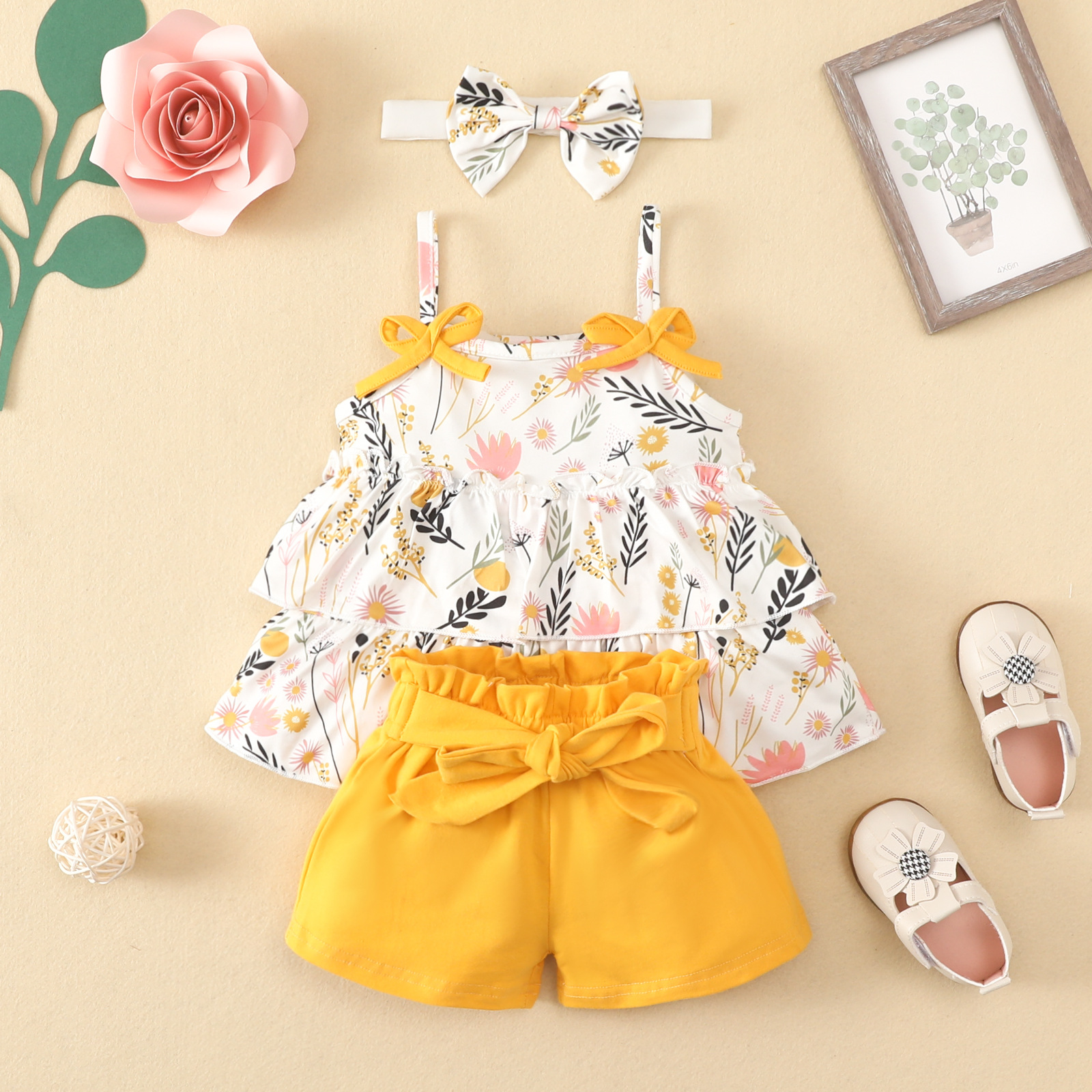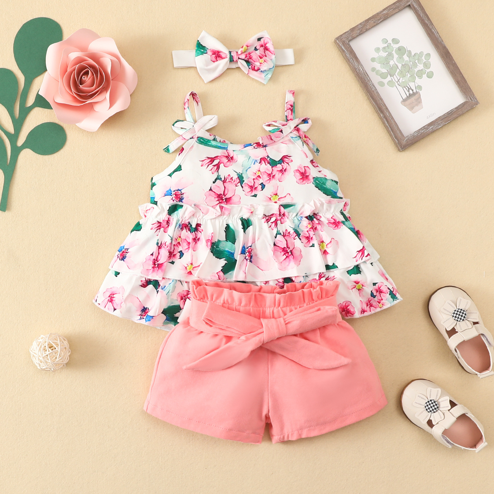 크로스 보더 아기 슬링 세트 소녀 아기 0-2 세 유럽과 미국 꽃 슬링 귀여운 면 반바지 3 종 세트 여름