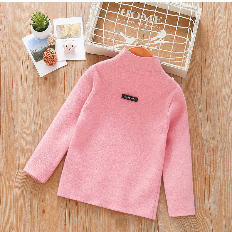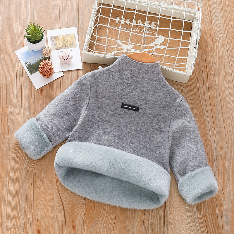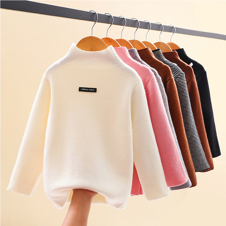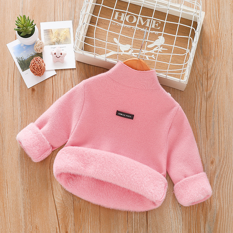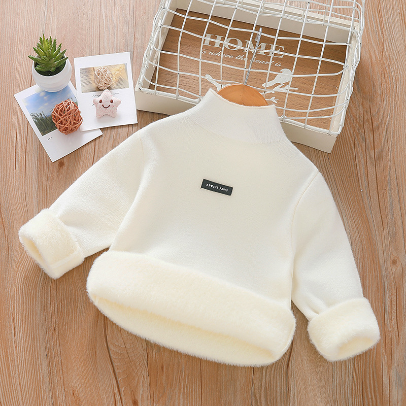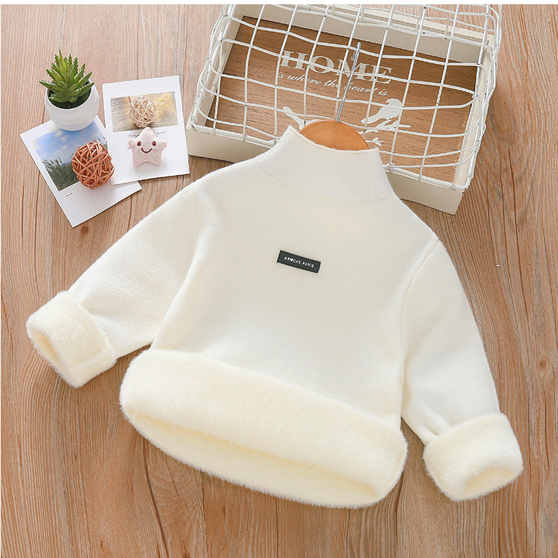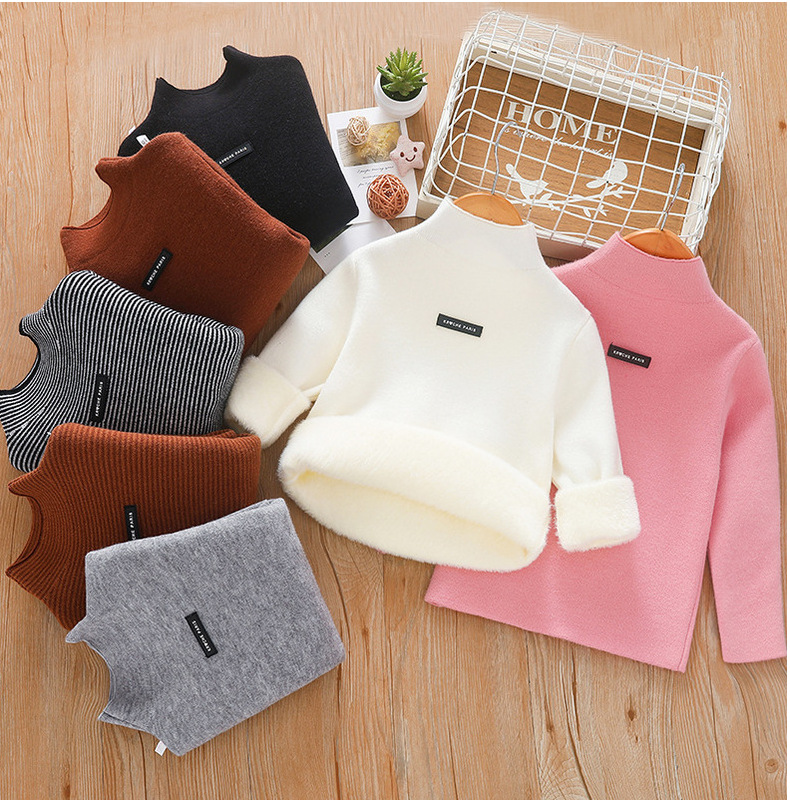 아동 스웨터 아동복 가을과 겨울 새로운 기모 두꺼운 원피스 벨벳베이스 셔츠 학생 단색 스웨터 도매스토어 가기