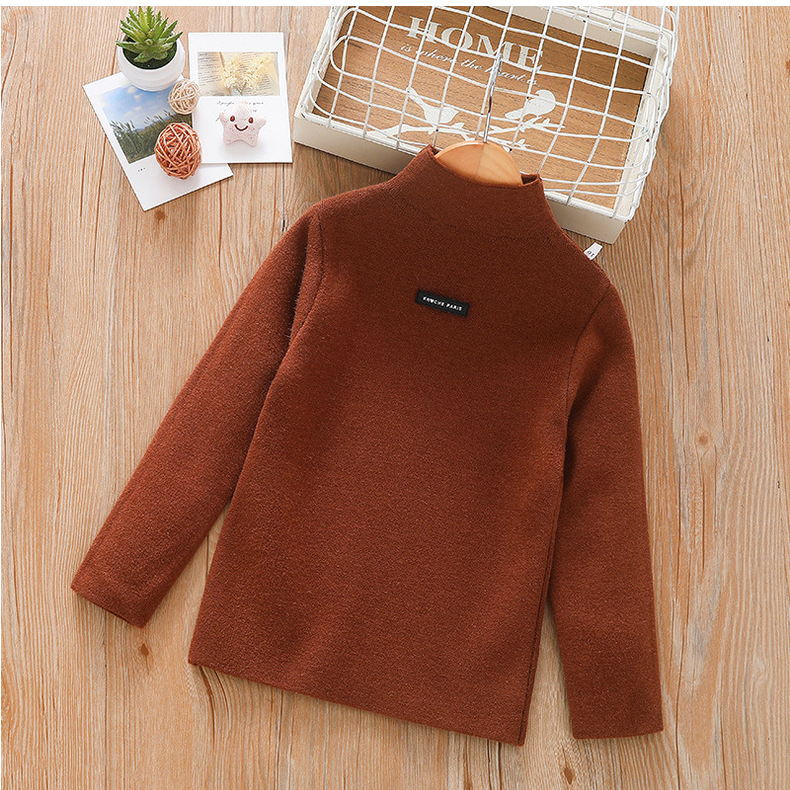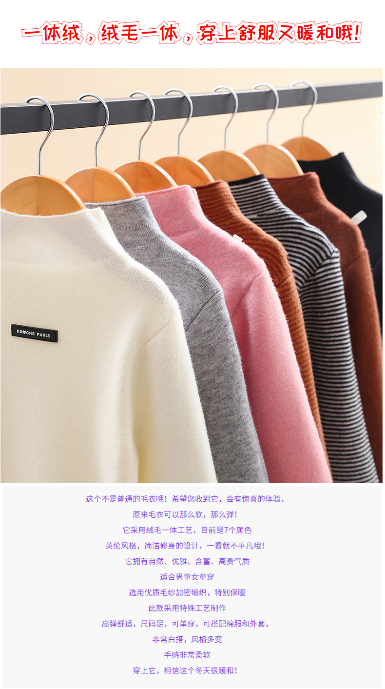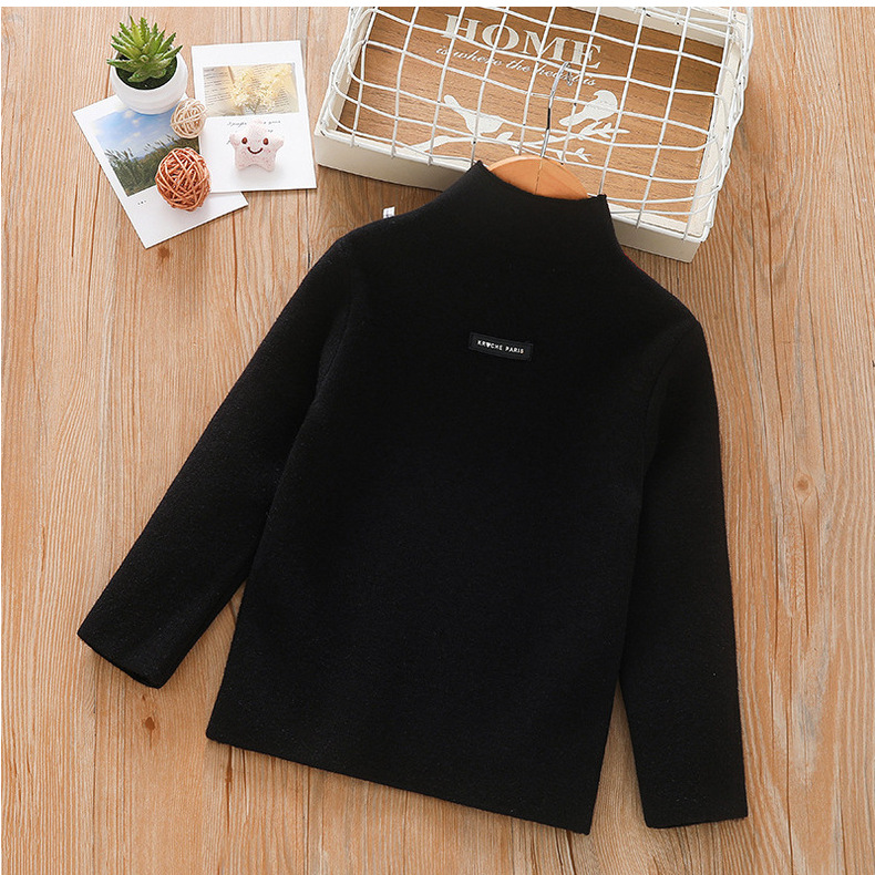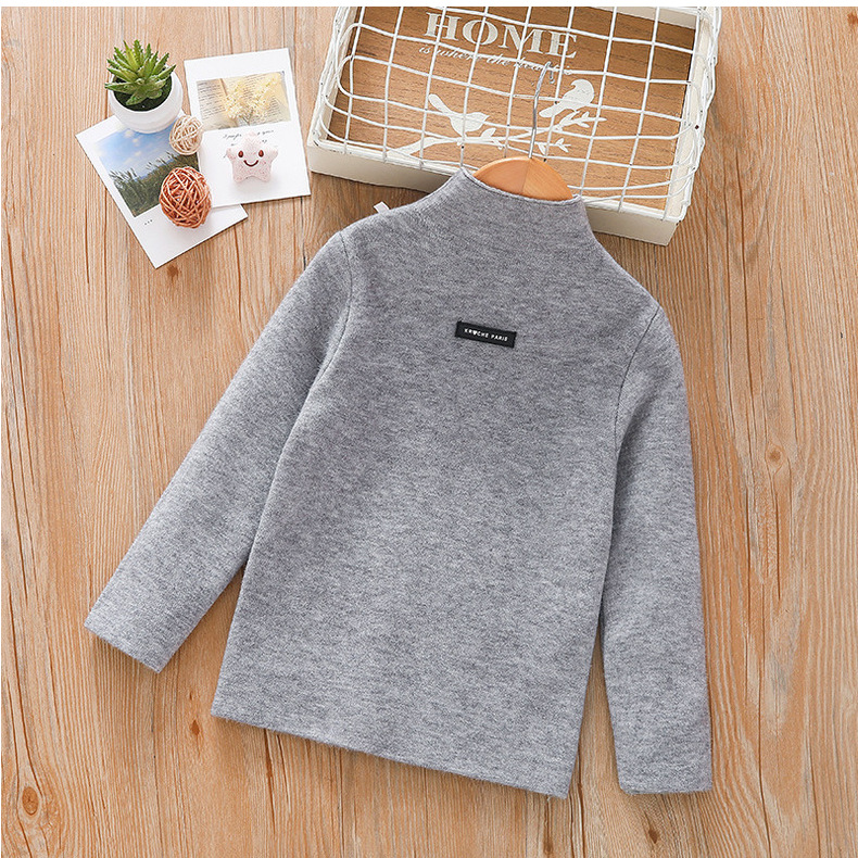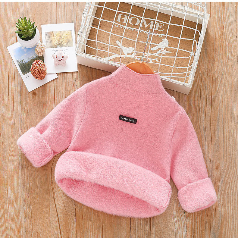 아동 스웨터 아동복 가을과 겨울 새로운 기모 두꺼운 원피스 벨벳베이스 셔츠 학생 단색 스웨터 도매스토어 가기