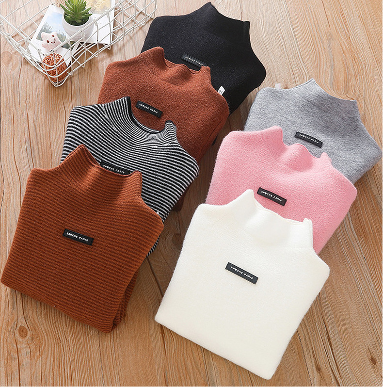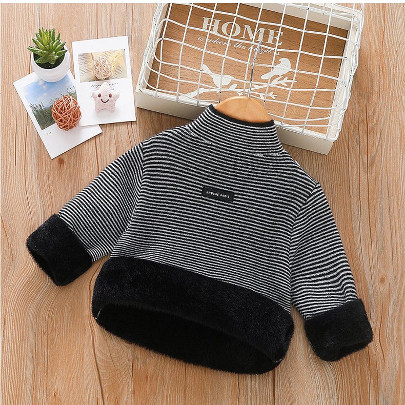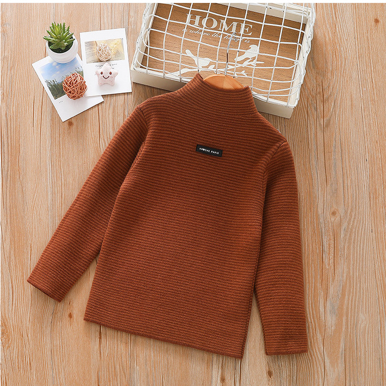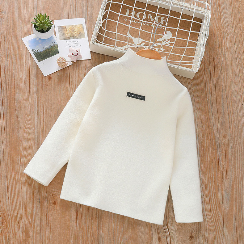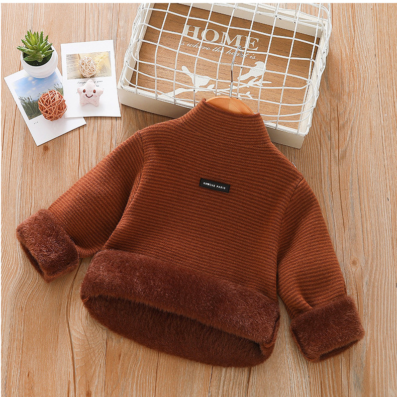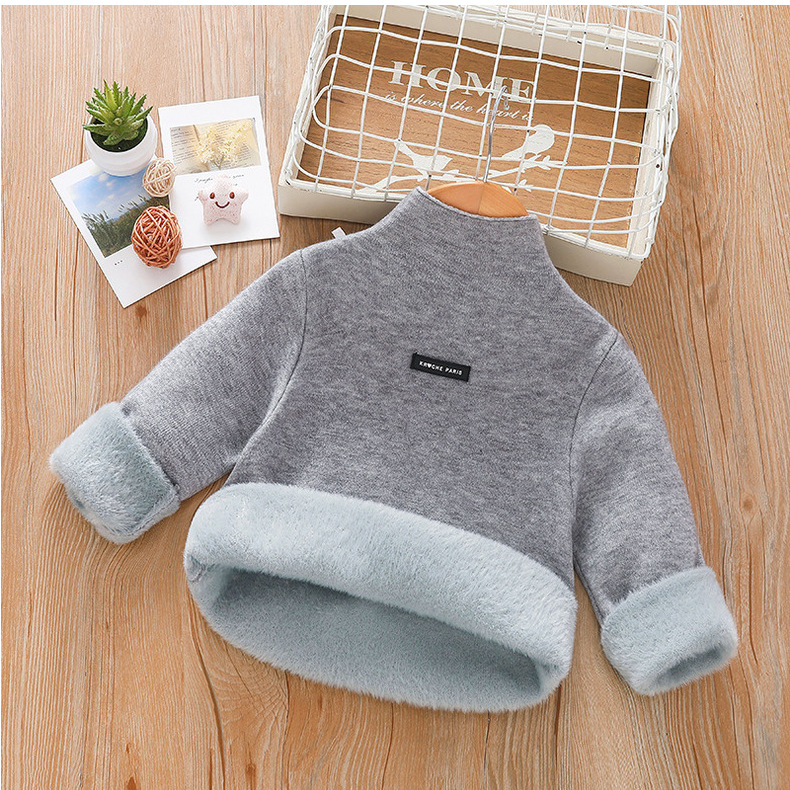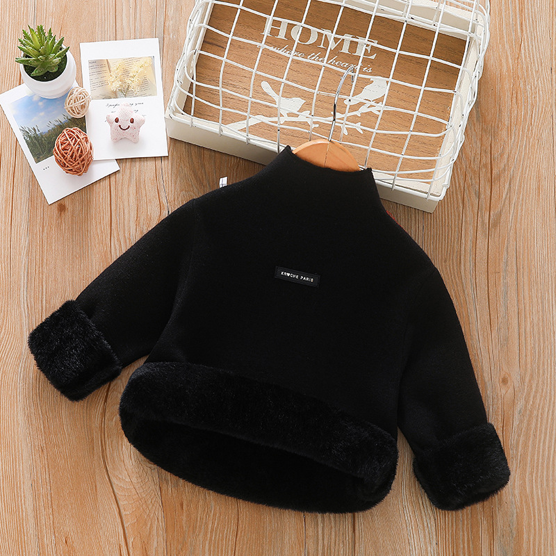 아동 스웨터 아동복 가을과 겨울 새로운 기모 두꺼운 원피스 벨벳베이스 셔츠 학생 단색 스웨터 도매스토어 가기