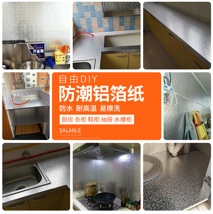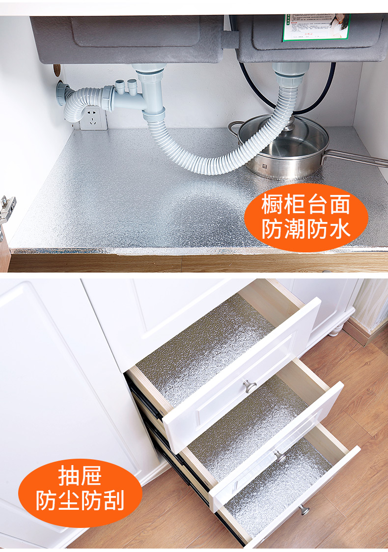 캐비닛 서랍 쿠션 종이 주석 호일 주방 캐비닛 방수 스티커 옷장 자체 접착 알루미늄 호일 종이 주방 내유성 방습 매트