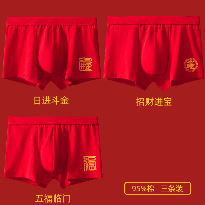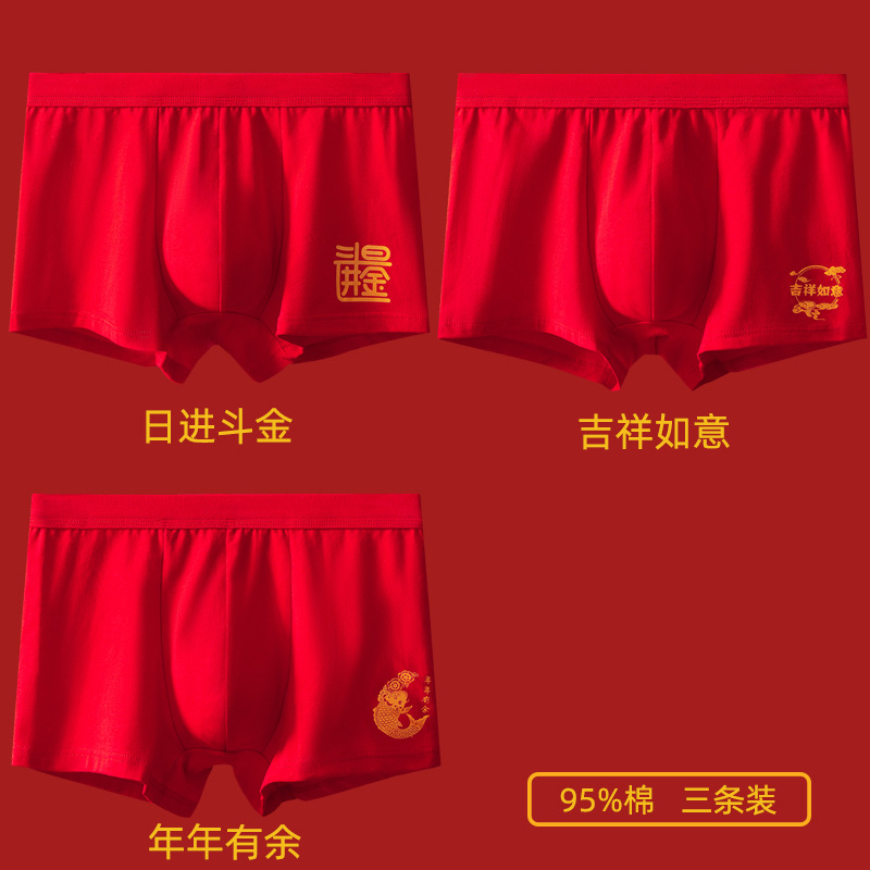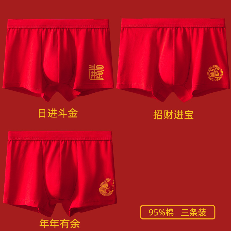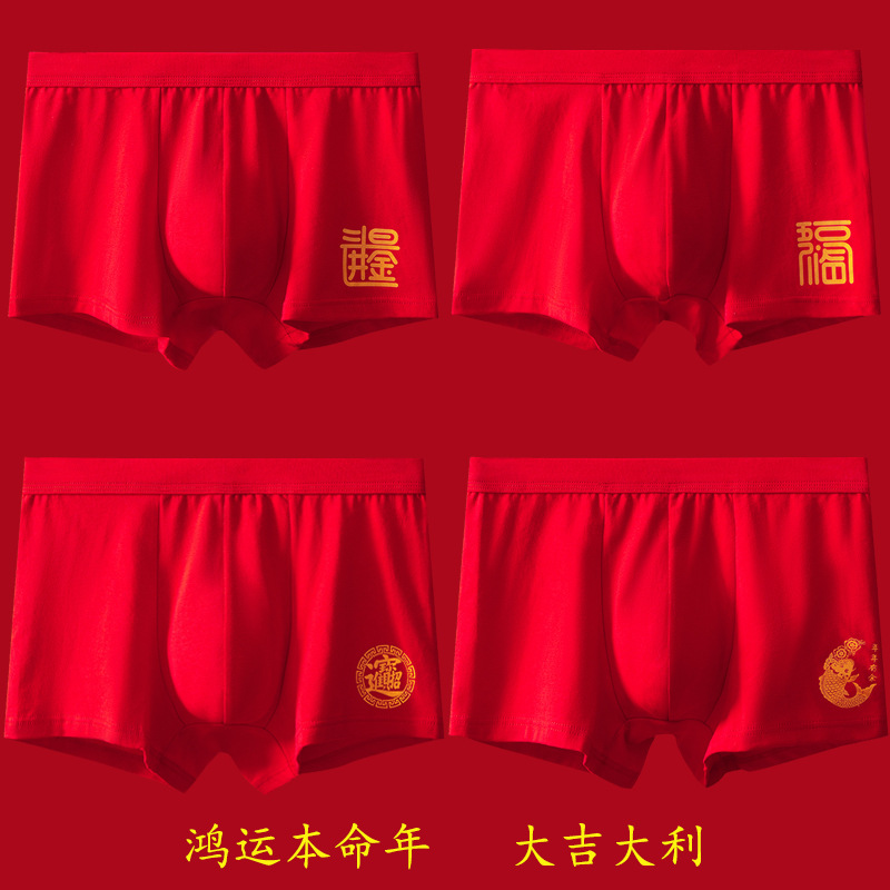 Bermingnian 빨간 속옷 남자 속옷 면 사각 드래곤 이어 웨딩 편안한 복서 반바지 가을과 겨울 새로운스토어 가기