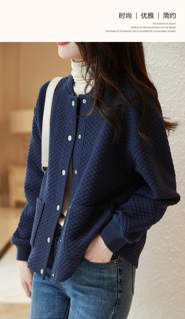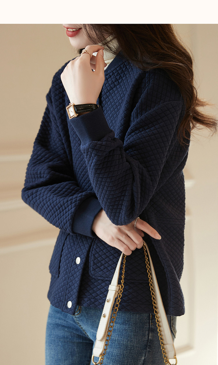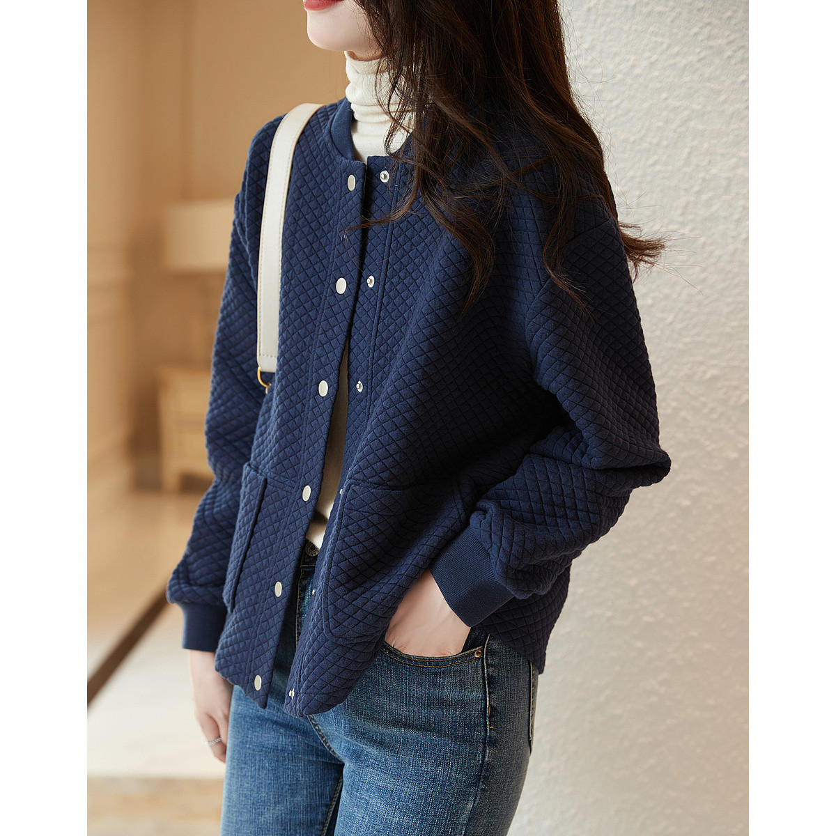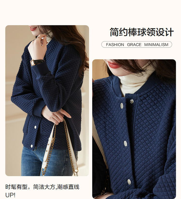 와플 패턴 야구 점퍼 여성용 봄 가을 디자인 감각 있는 틈새 패션 젊어 보이는 캐주얼 재킷 카디건스토어 가기