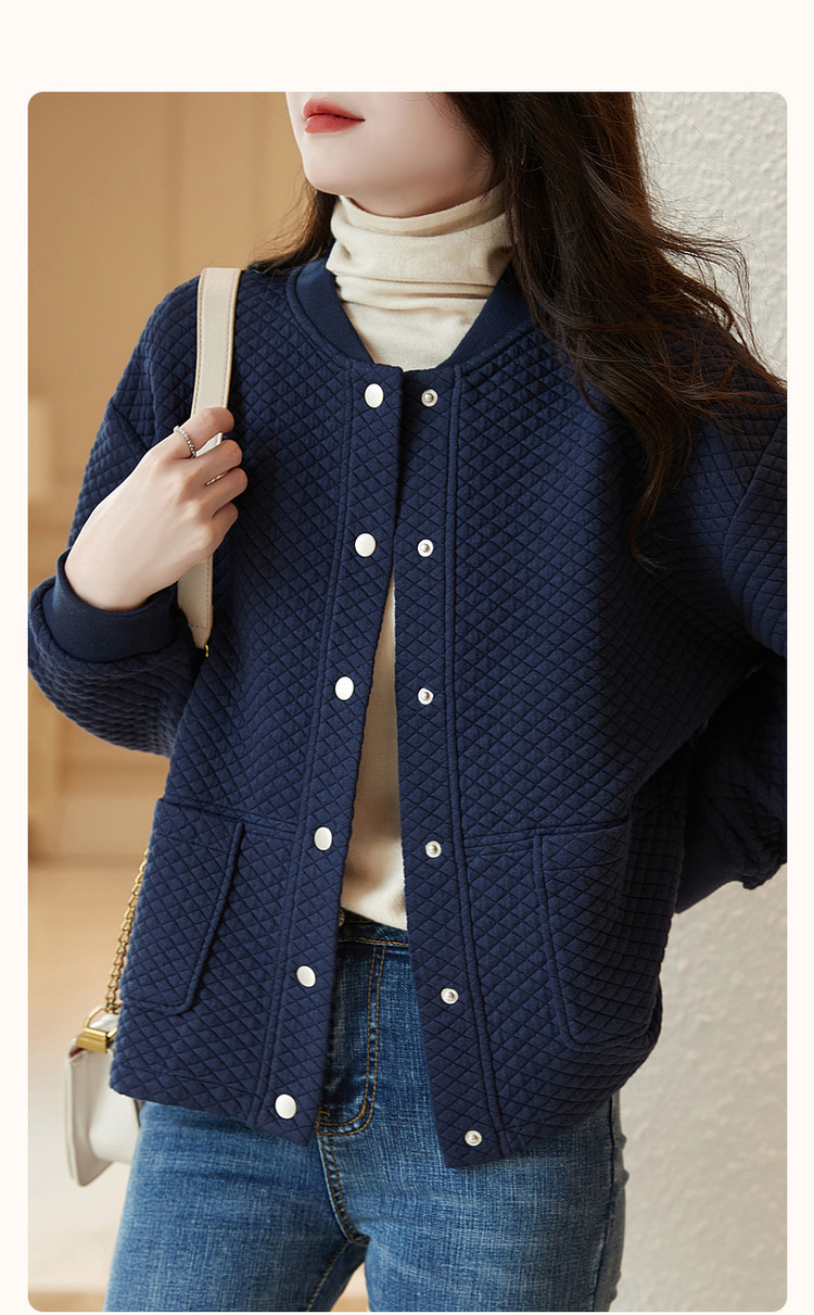 와플 패턴 야구 점퍼 여성용 봄 가을 디자인 감각 있는 틈새 패션 젊어 보이는 캐주얼 재킷 카디건