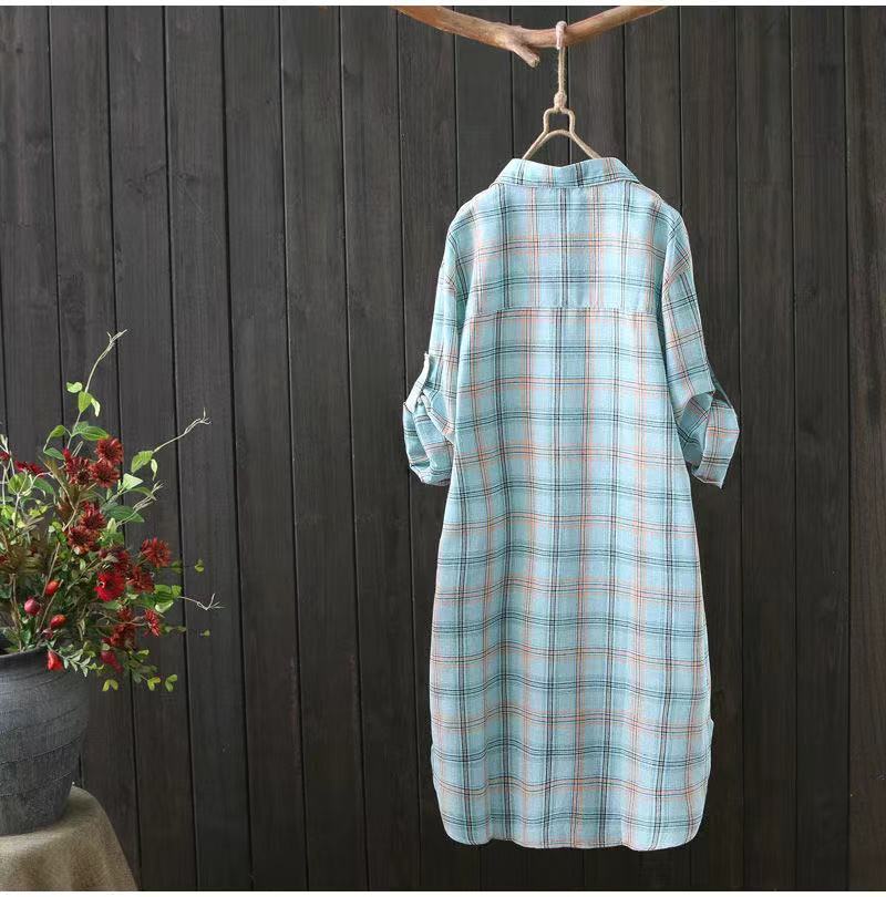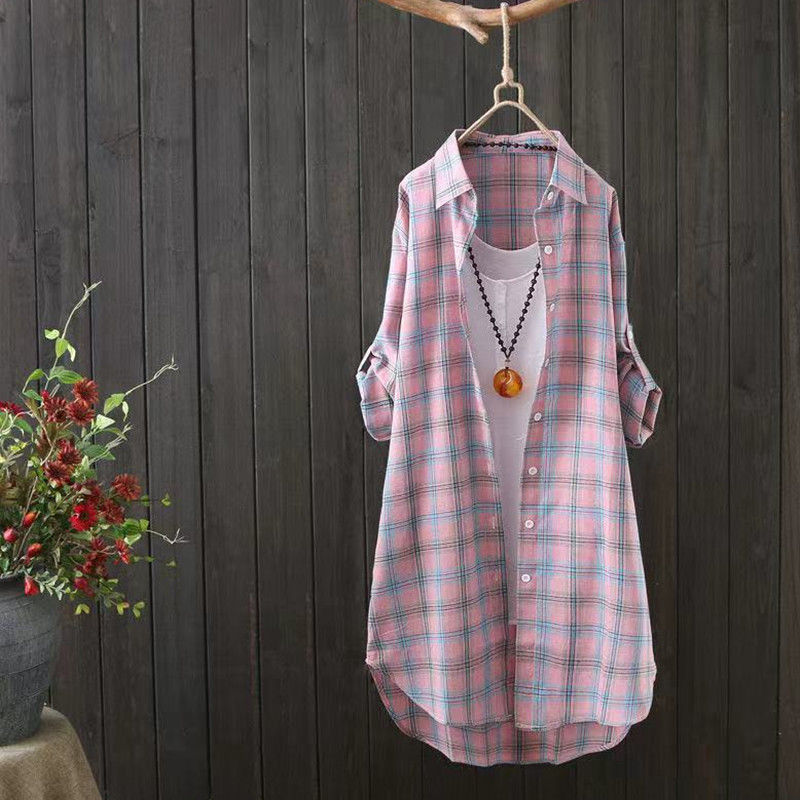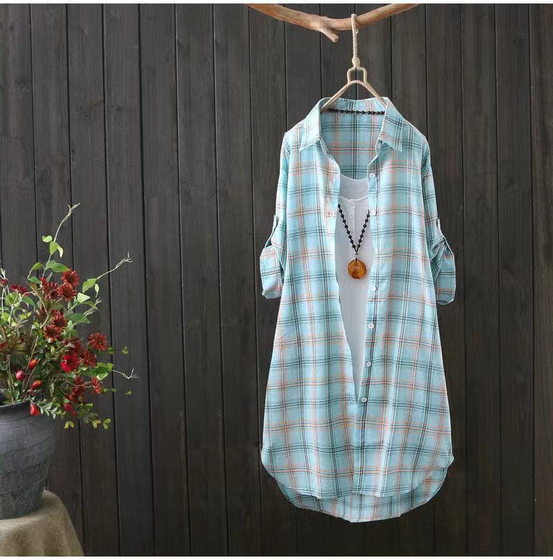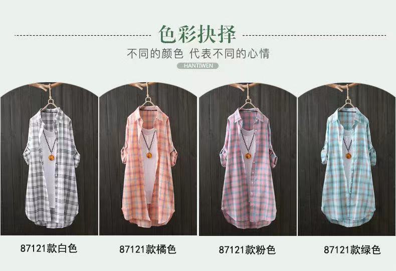 긴팔 체크 셔츠 여성용 중간 길이 2023 여름 새로운 슬리밍 웨스턴 스타일 루즈한 가디건 자외선 차단제 코트 셔츠스토어 가기