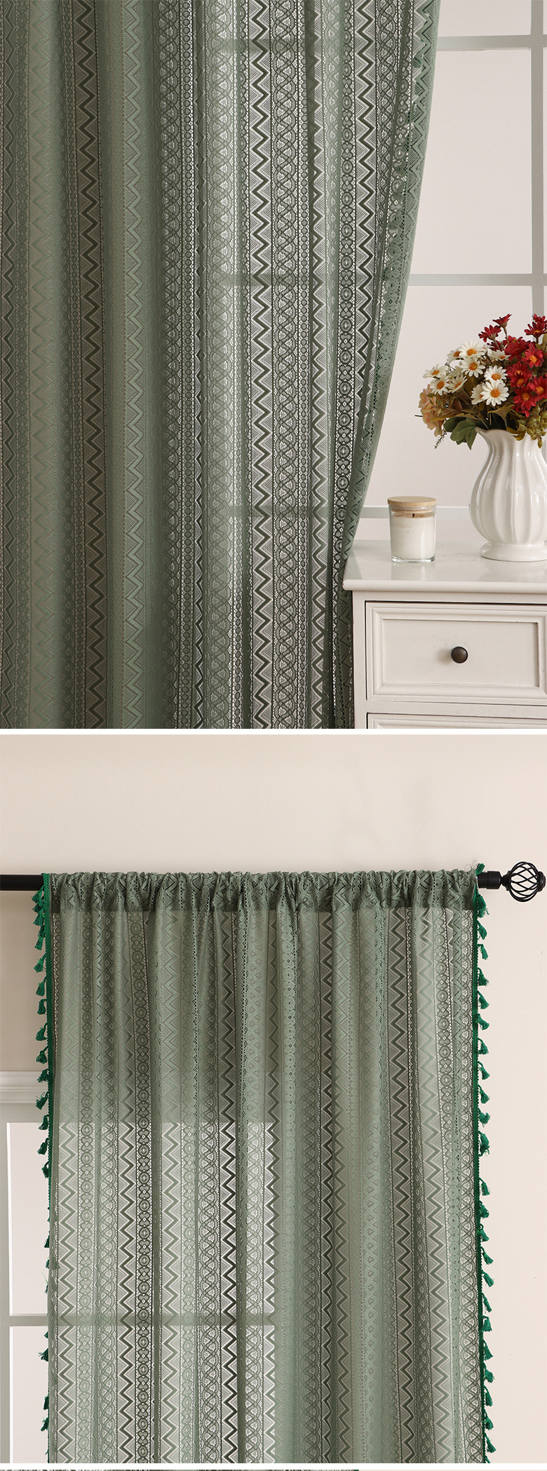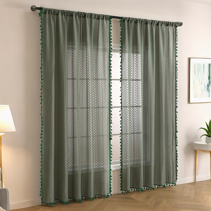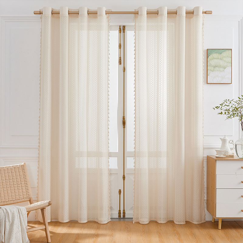 일본식 조용한 윈드 크림 화이트 거즈 커튼 거실 발코니 면과 린넨 웨이브 기하학적 파티션 윈도우 스크린 도매 완료스토어 가기