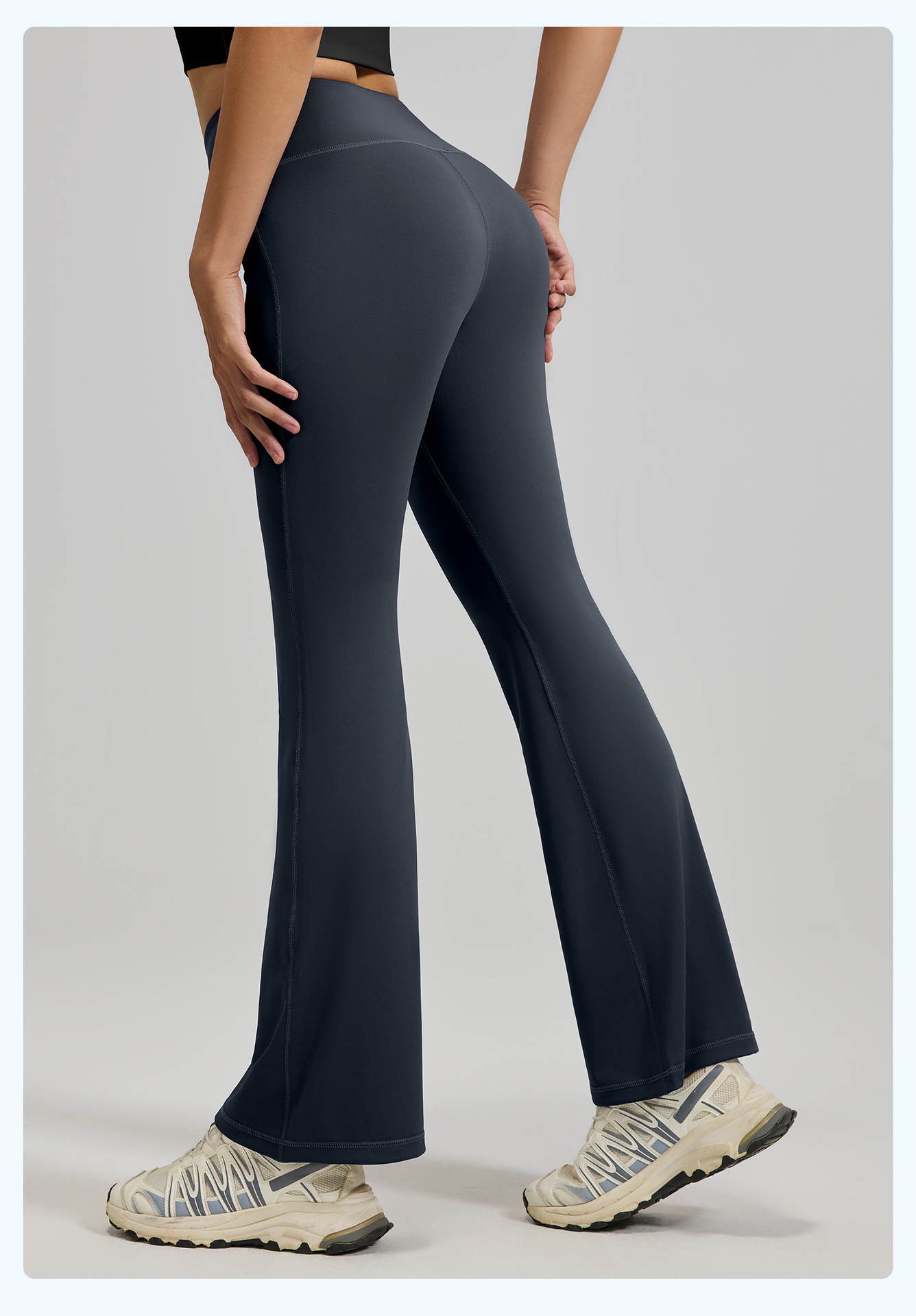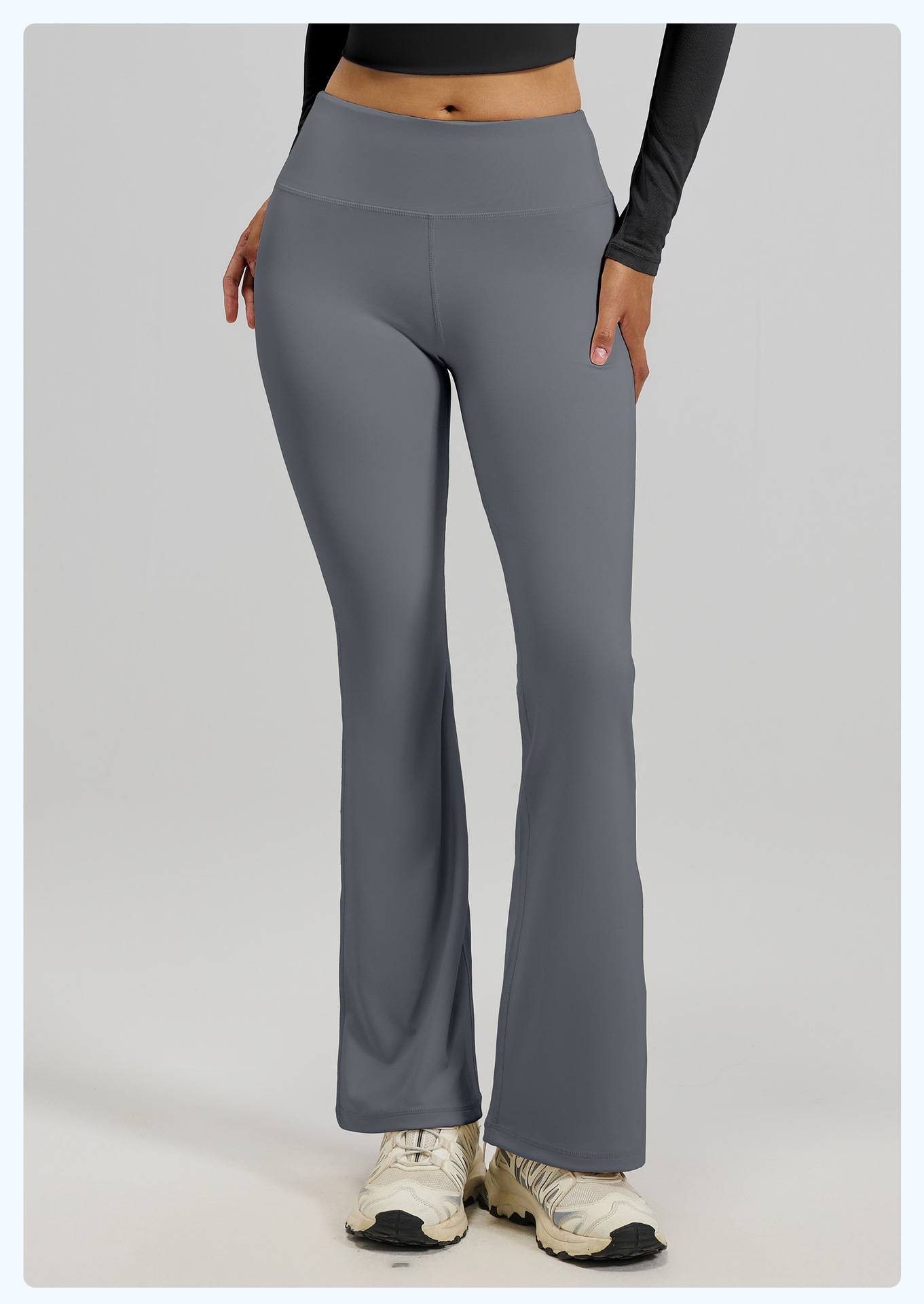 여성용 힙업 하이웨이스트 슬림핏 피트니스 스포츠 마이크로 플레어 요가 팬츠 나팔바지스토어 가기