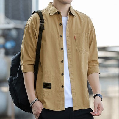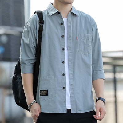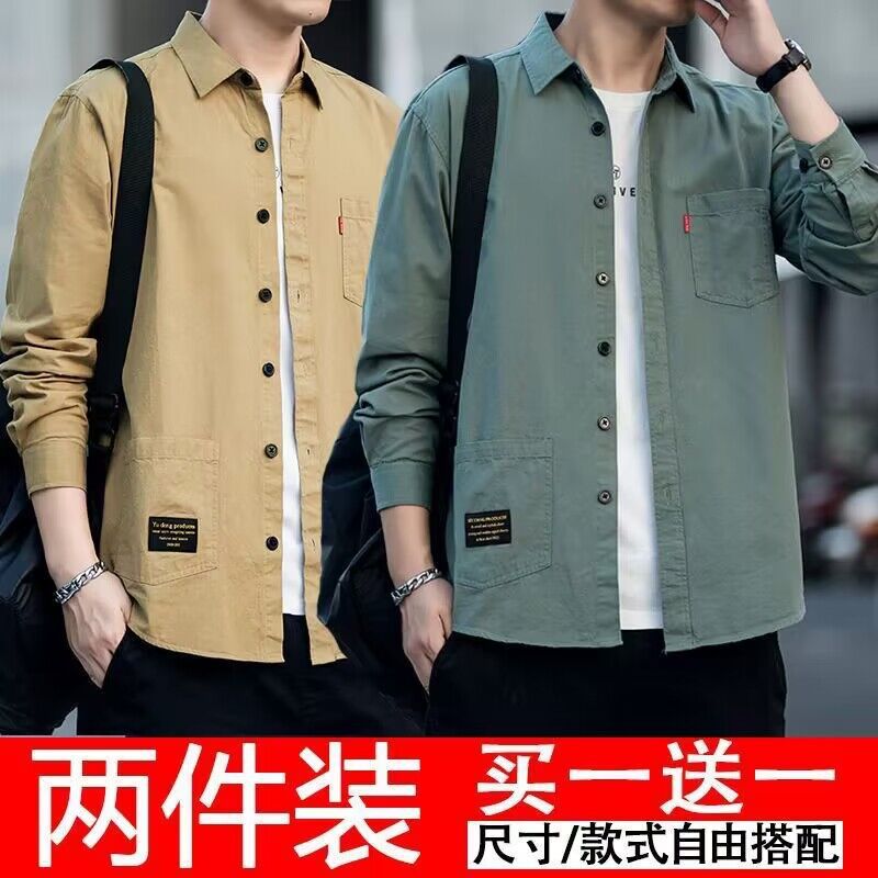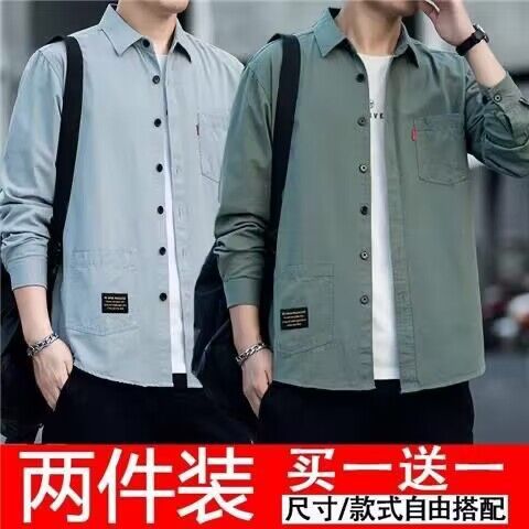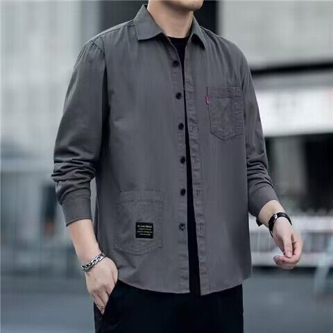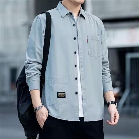 2022 봄과 여름 비 다림질 루즈한 셔츠 남성용 긴팔 캐주얼 작업복 셔츠 봄과 가을 코트 남성 패션스토어 가기