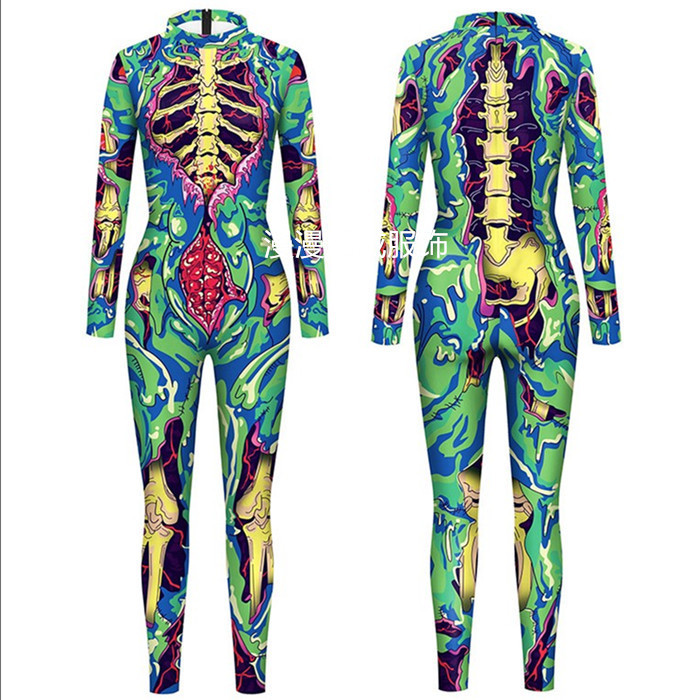 2022 새로운 크리스마스 그린 3D 디지털 인쇄 성인 어린이 슬림 긴 소매 cos