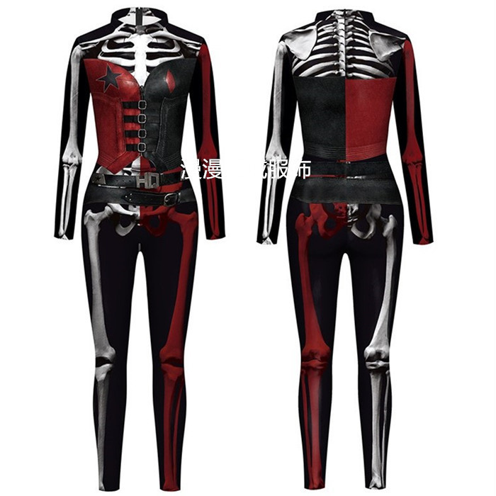 • 빨간색과 검은 색 벨트 버클 화이트 스켈레톤
