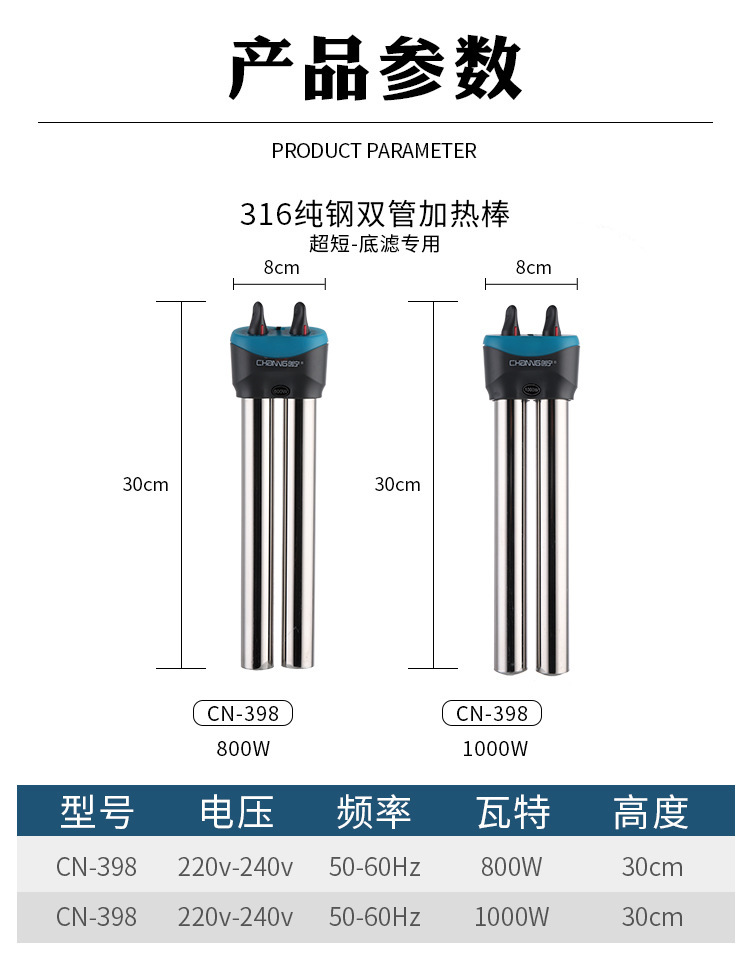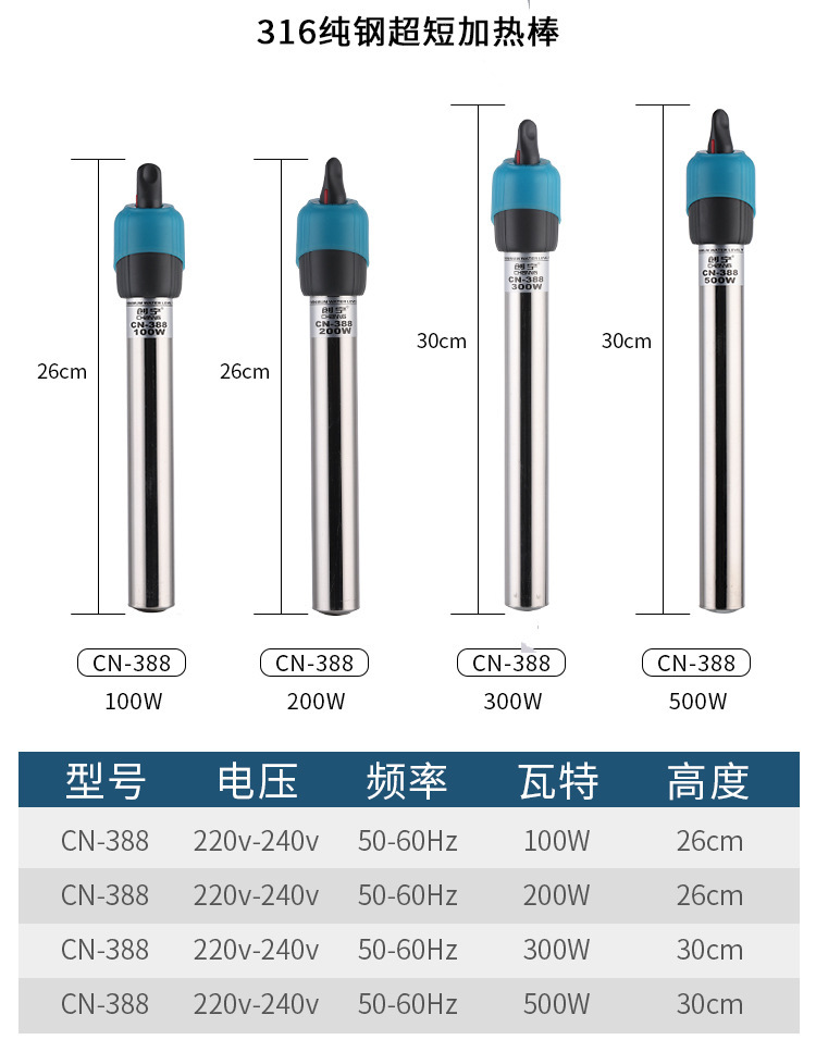 장 어항 가열봉 자동 일정온도 가열봉 수족관 방폭 히터 소형 스테인리스 초단파 이중 튜브