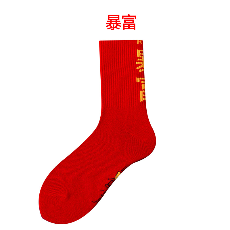 부밍 년 빨간 양말 여성의 중간 배럴 봄과 가을 면화 양말 통기성 긴 배럴 새해 좋은 행운 축제 웨딩 양말