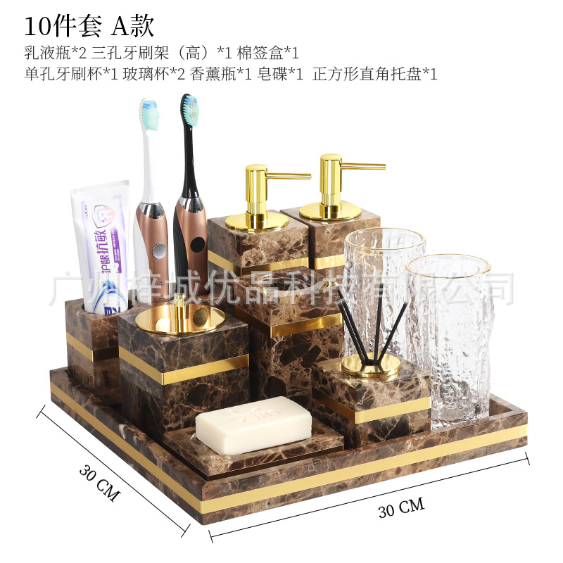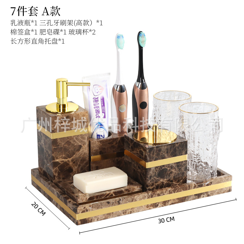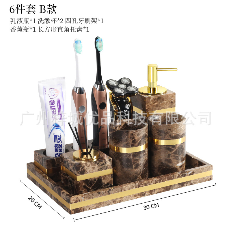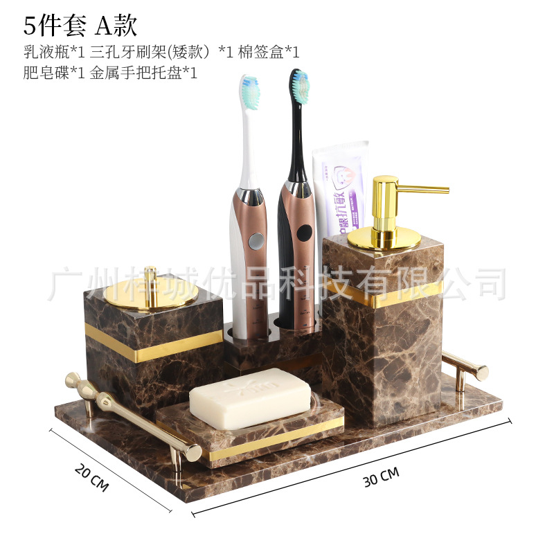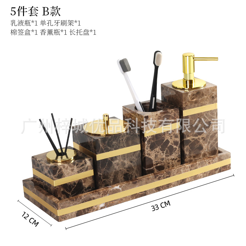 고급 대리석 욕실 5 종 세트 세면 도구 세트 욕실 용품 트레이 손 소독제 병 모델 룸 장식품