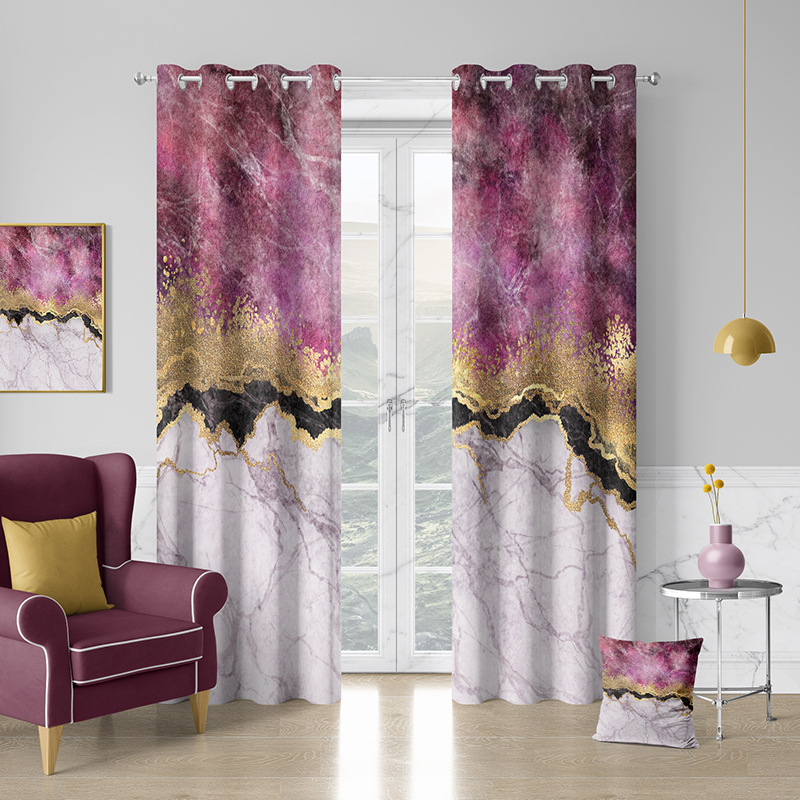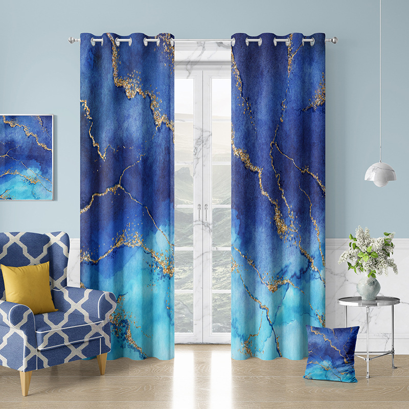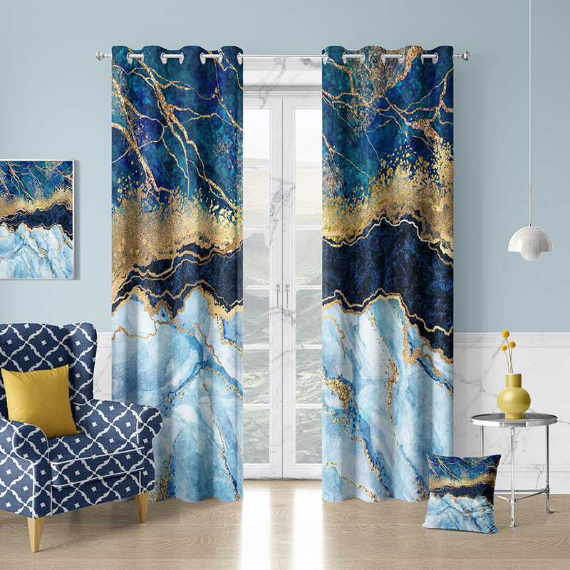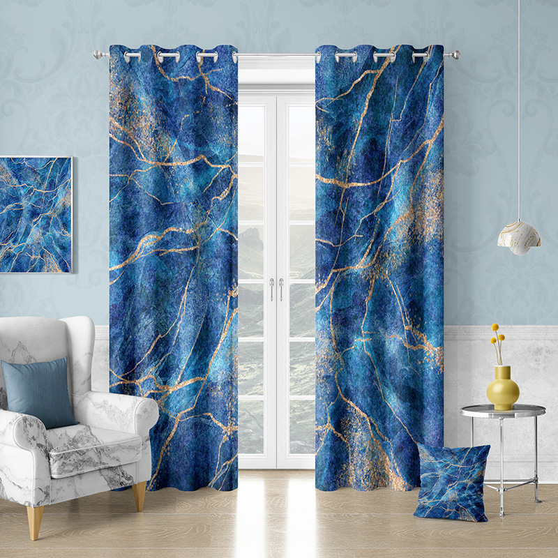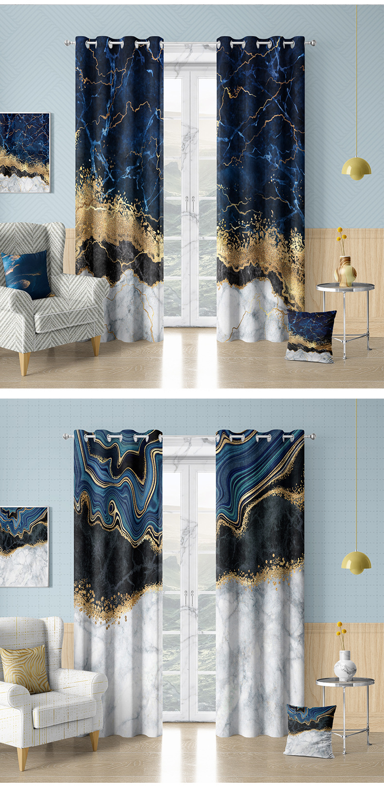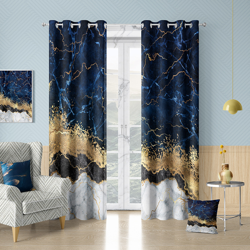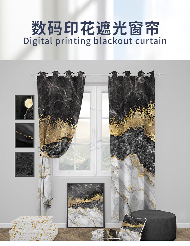 3D 디지털 인쇄 금테 대리석 커튼 등 고급 대기 커튼 공장 도매용 유럽식 크로스 미러스토어 가기