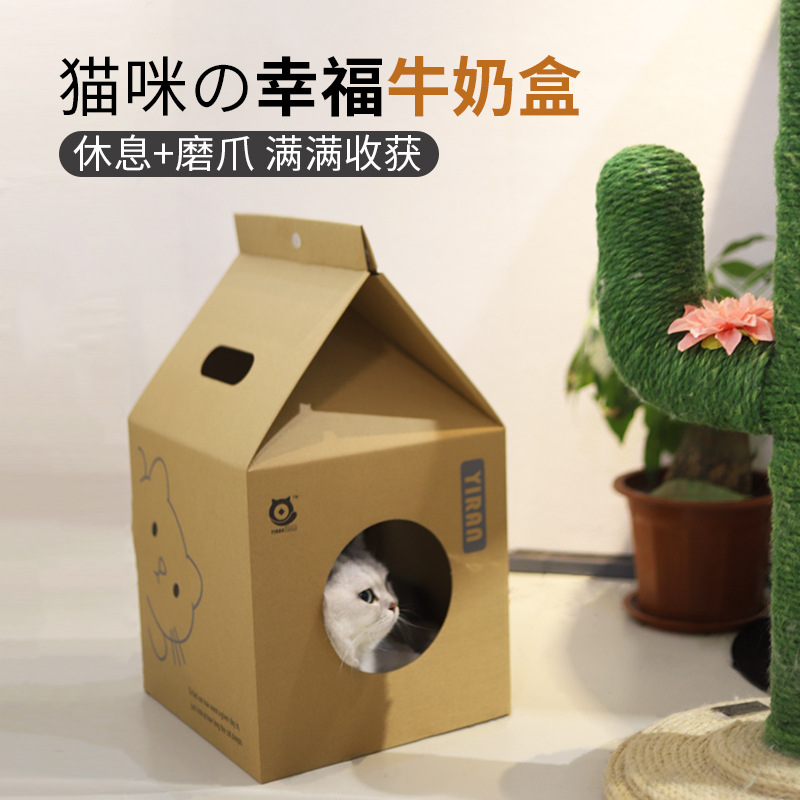 우유 상자 고양이 긁는 보드 골판지 고양이 둥지 고밀도 고양이 발톱 연삭 유물 비 칩 애완 동물 장난감스토어 가기