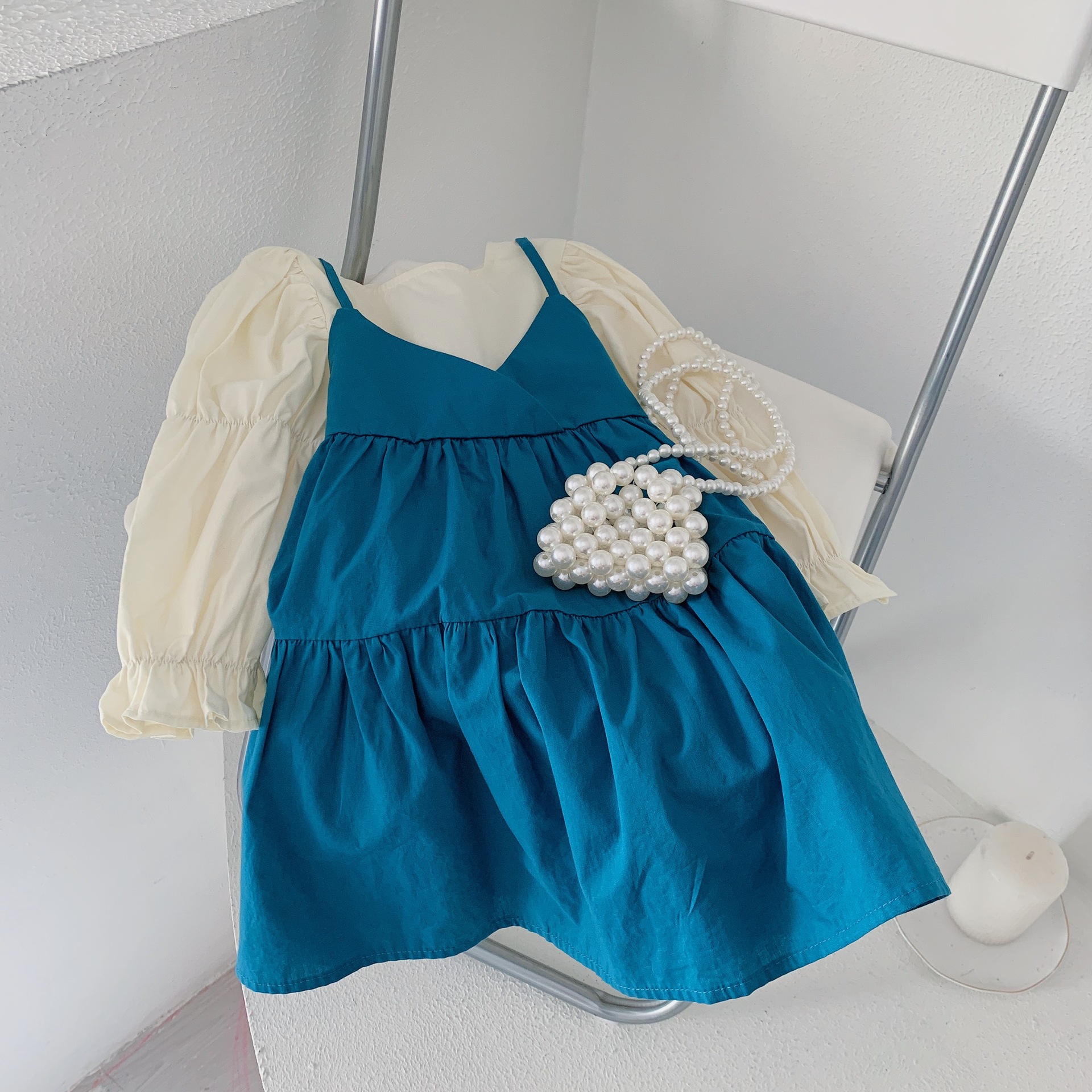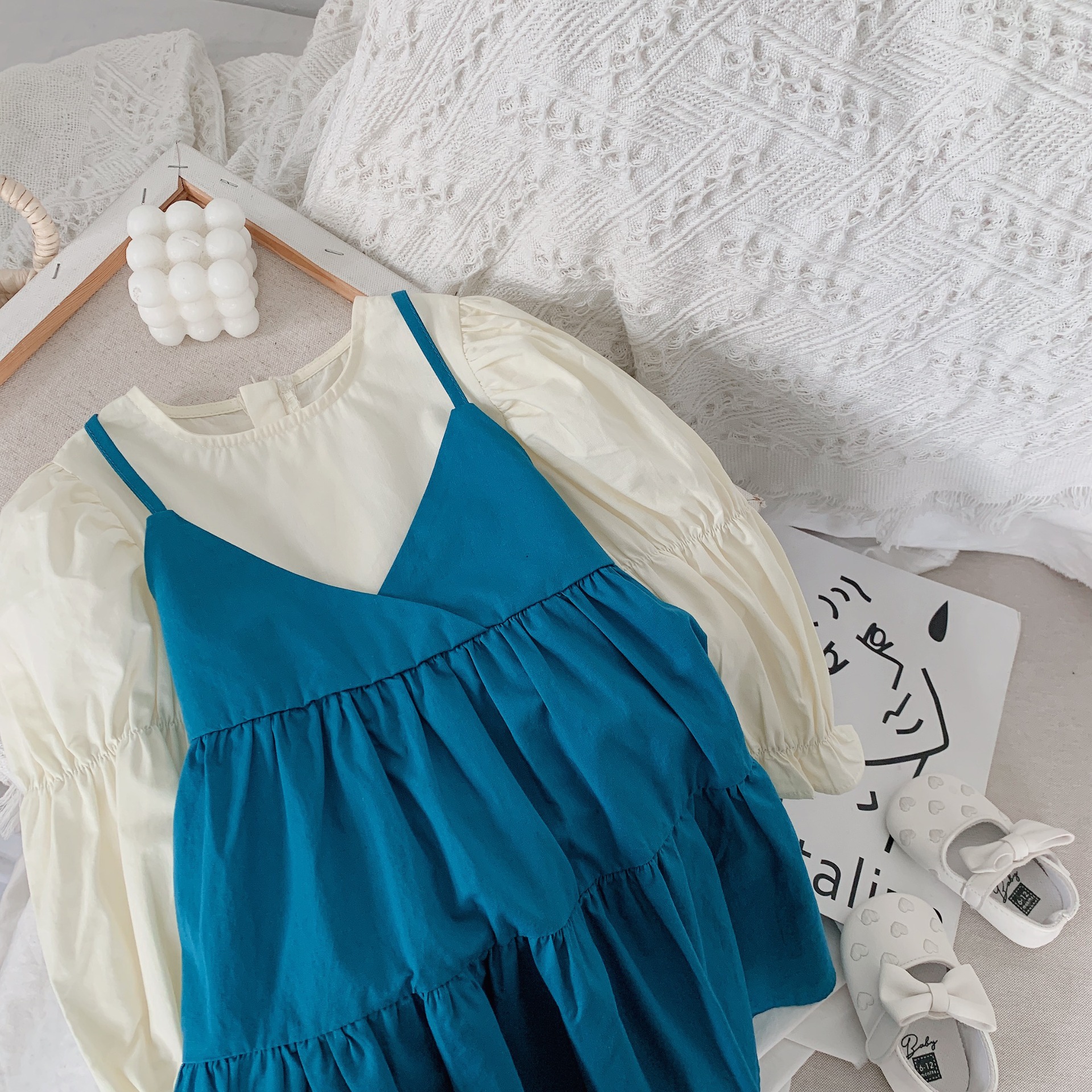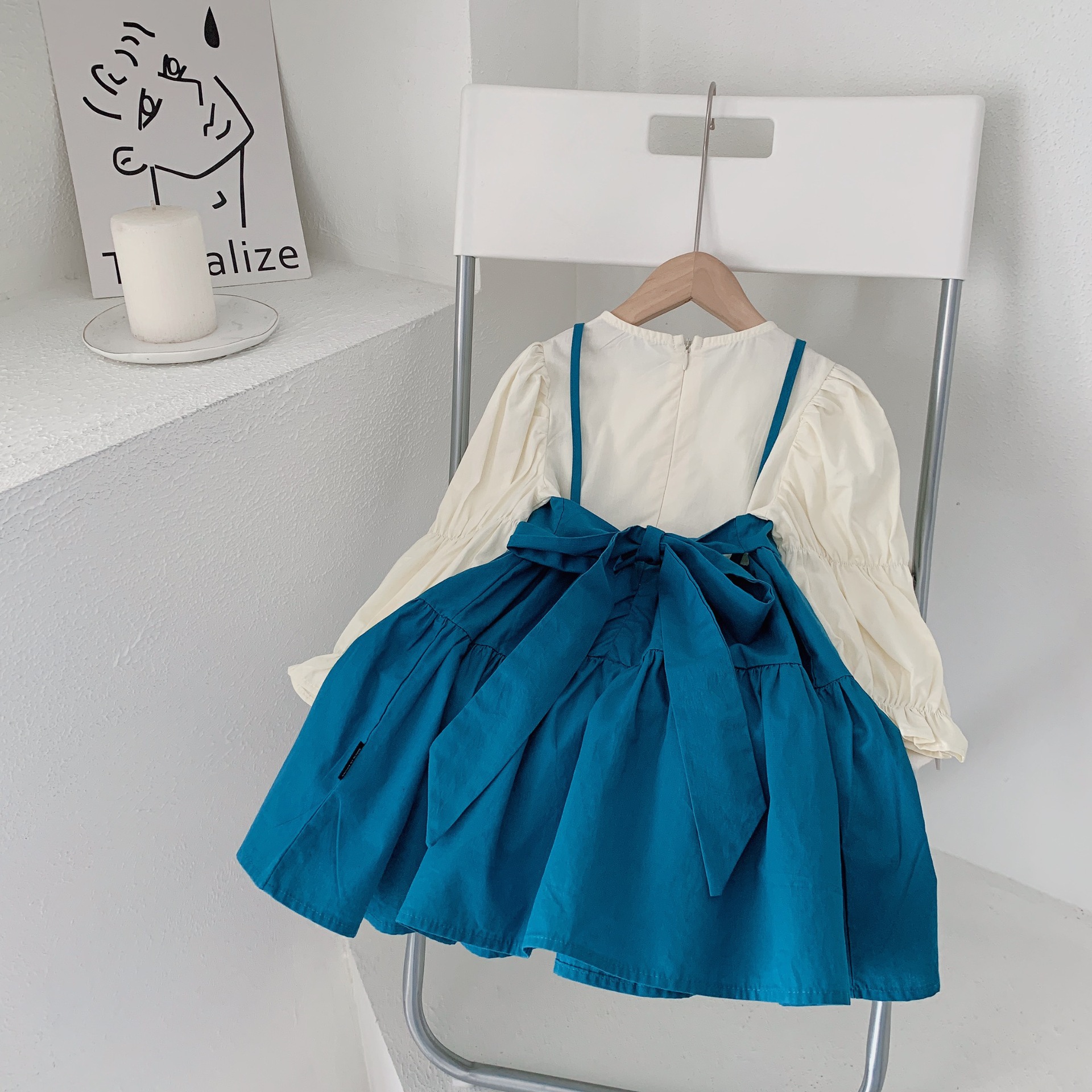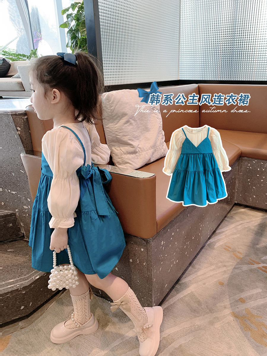 여아 웨스턴 스타일 공주 원피스 2023 가을 새로운 한국 아기 온라인 연예인 가짜 투피스 원피스 어린이 원피스 원피스스토어 가기
