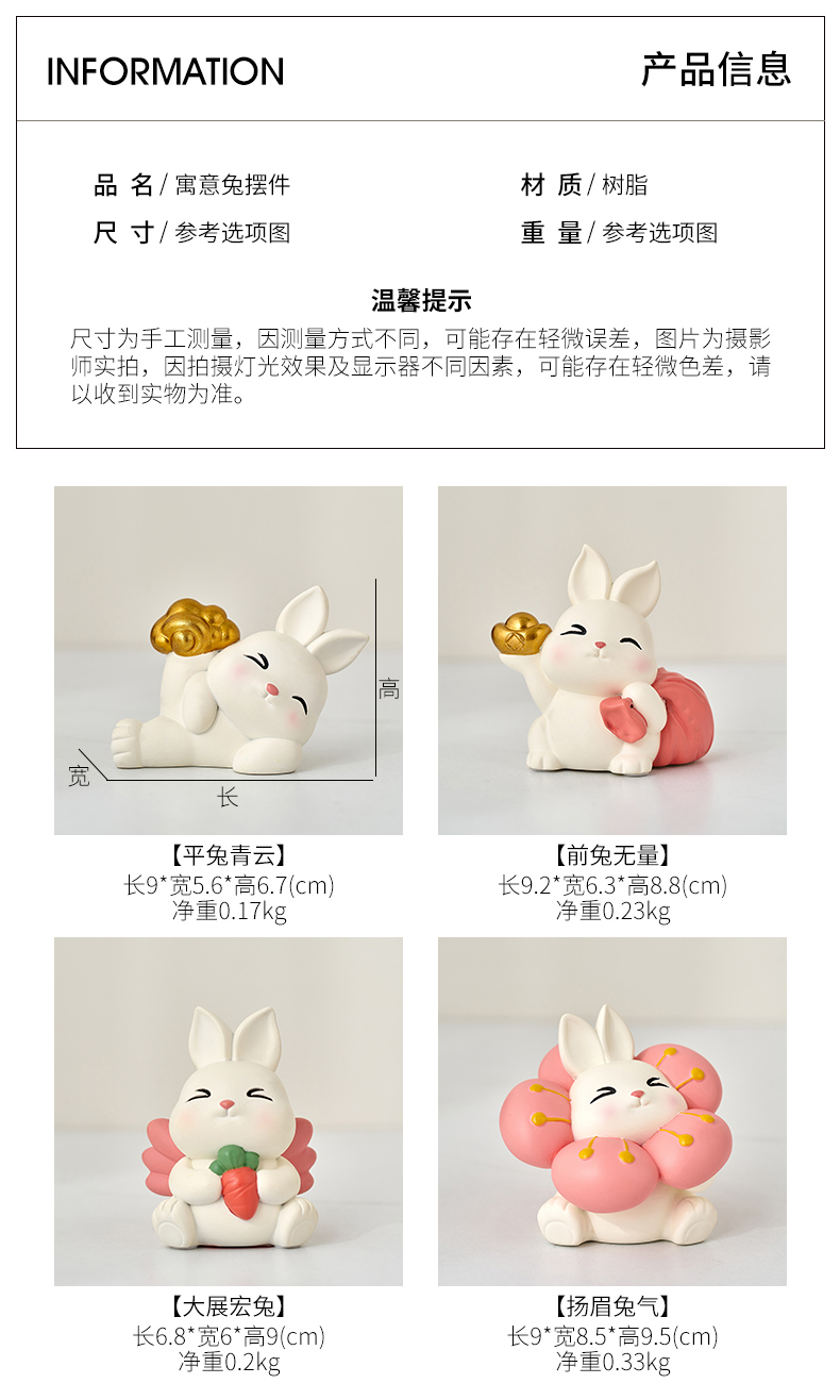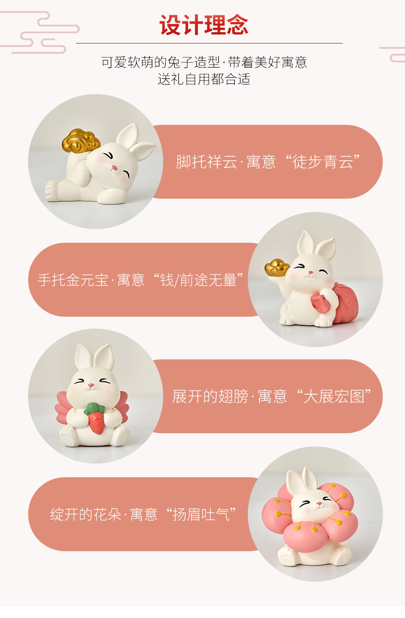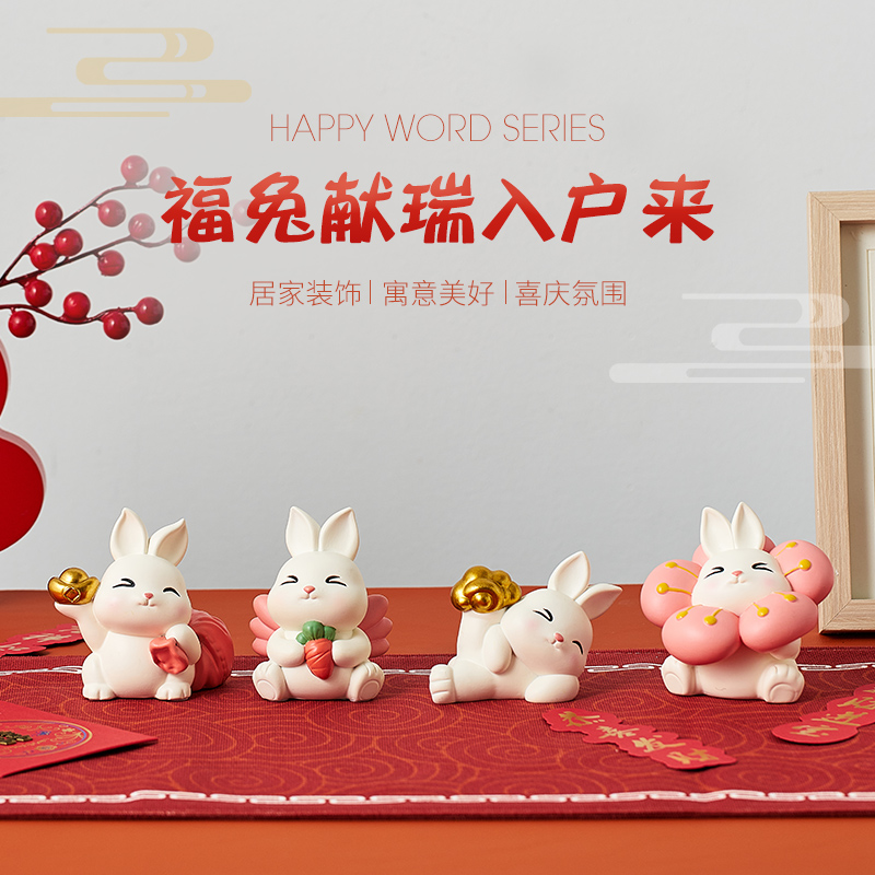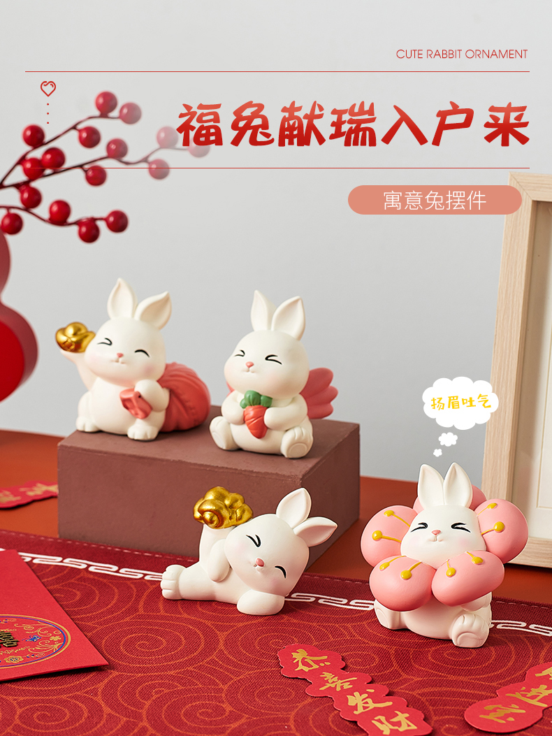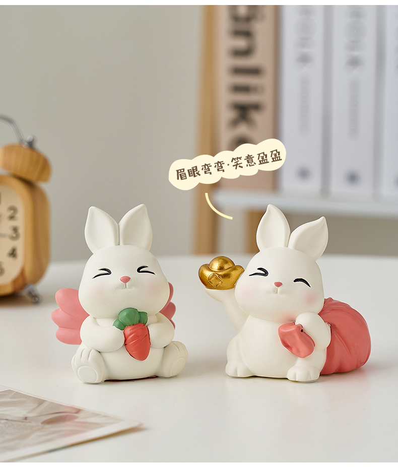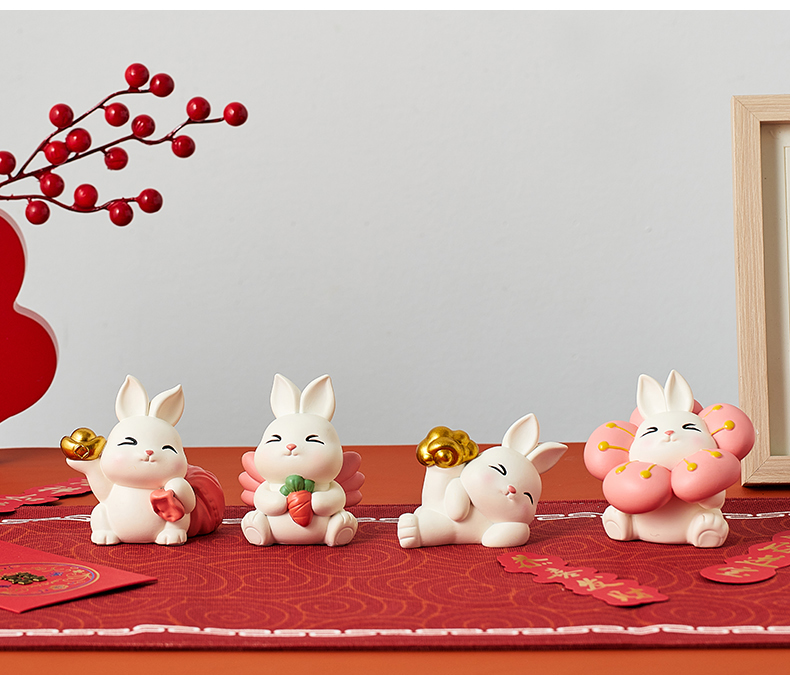귀여운 장식 년 토끼 장식품 생활의 토끼 해 마스코트 치유 작은 개체 생일 선물 새해 조디악 년