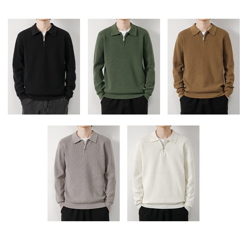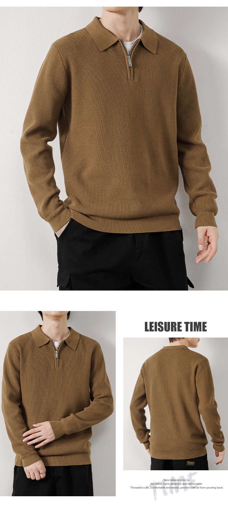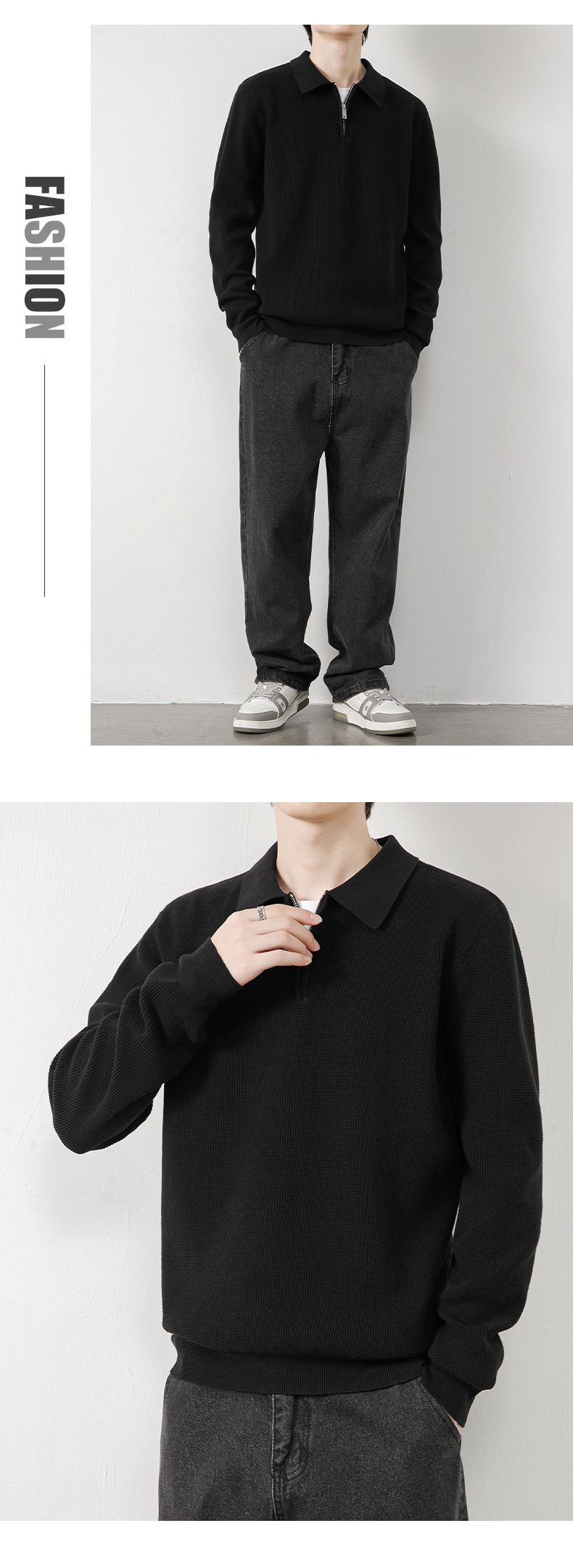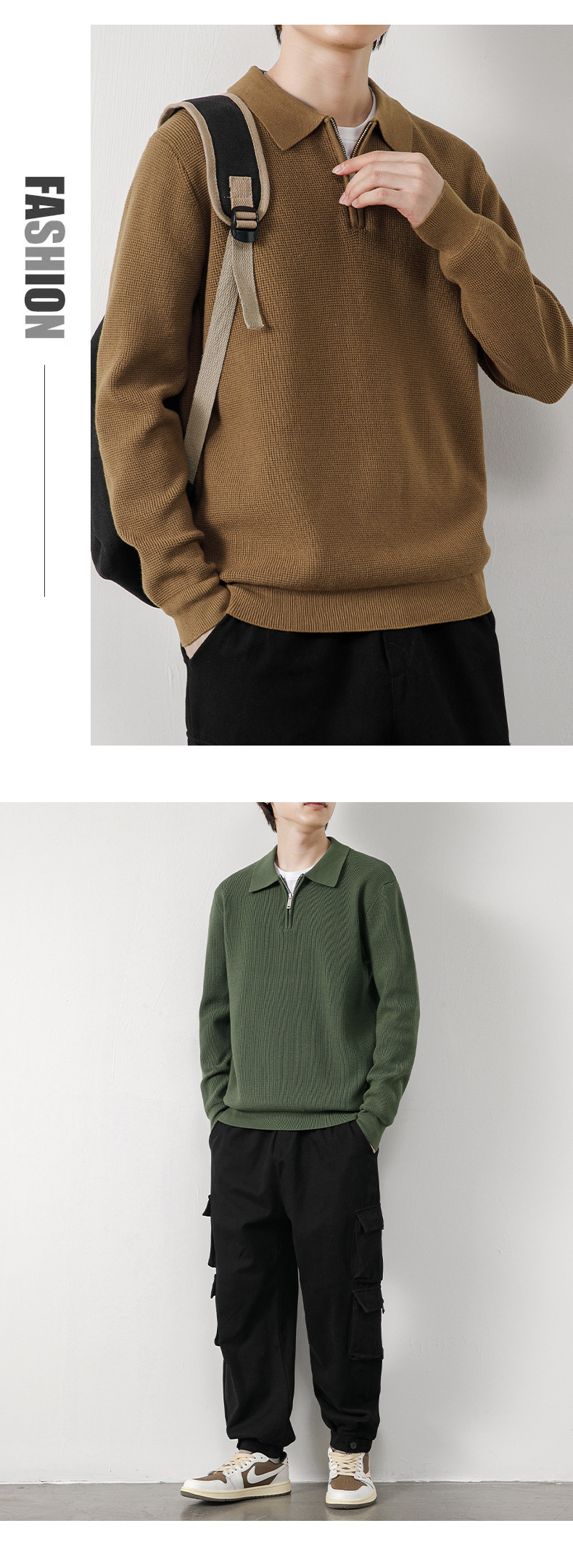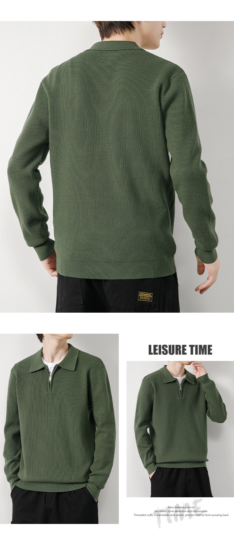 2024 가을 겨울 남성 니트 폴로 셔츠 레트로 지퍼 라펠 스웨터 루즈핏 청년 스웨터 재킷 긴팔스토어 가기