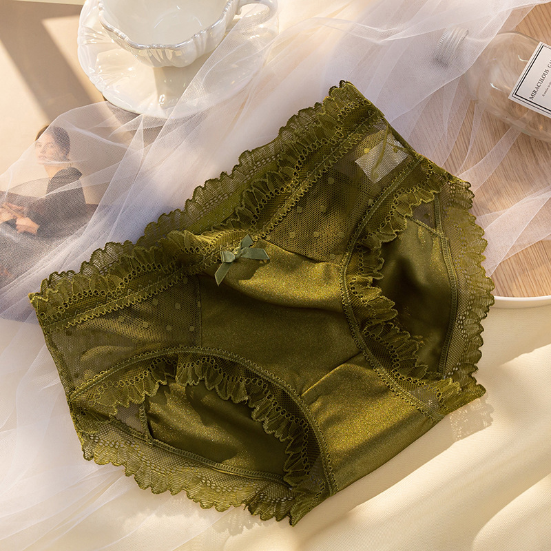 레이스 팬티 여성용 미드 웨이스트 섹시 원활한 순면 가랑이 일본식 소녀의 얇은 순수 레이스 여성용 팬티