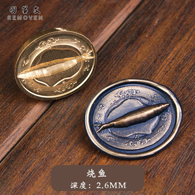오리지널 파이어 페인트 씰 푸드 시리즈 귀여운 찐 박제 롤빵 비스킷 물고기 인사말 카드 불 페인트 동전 인감 불 페인트 씰