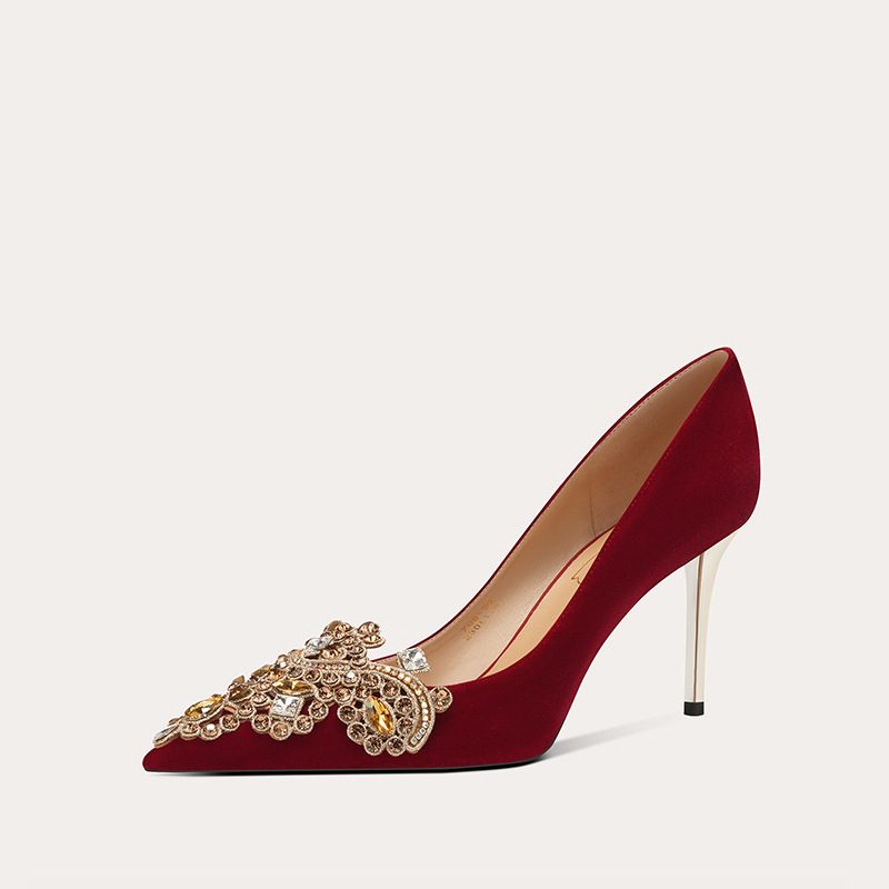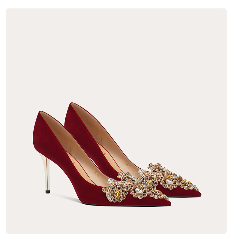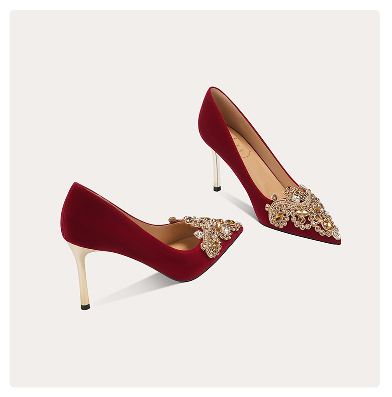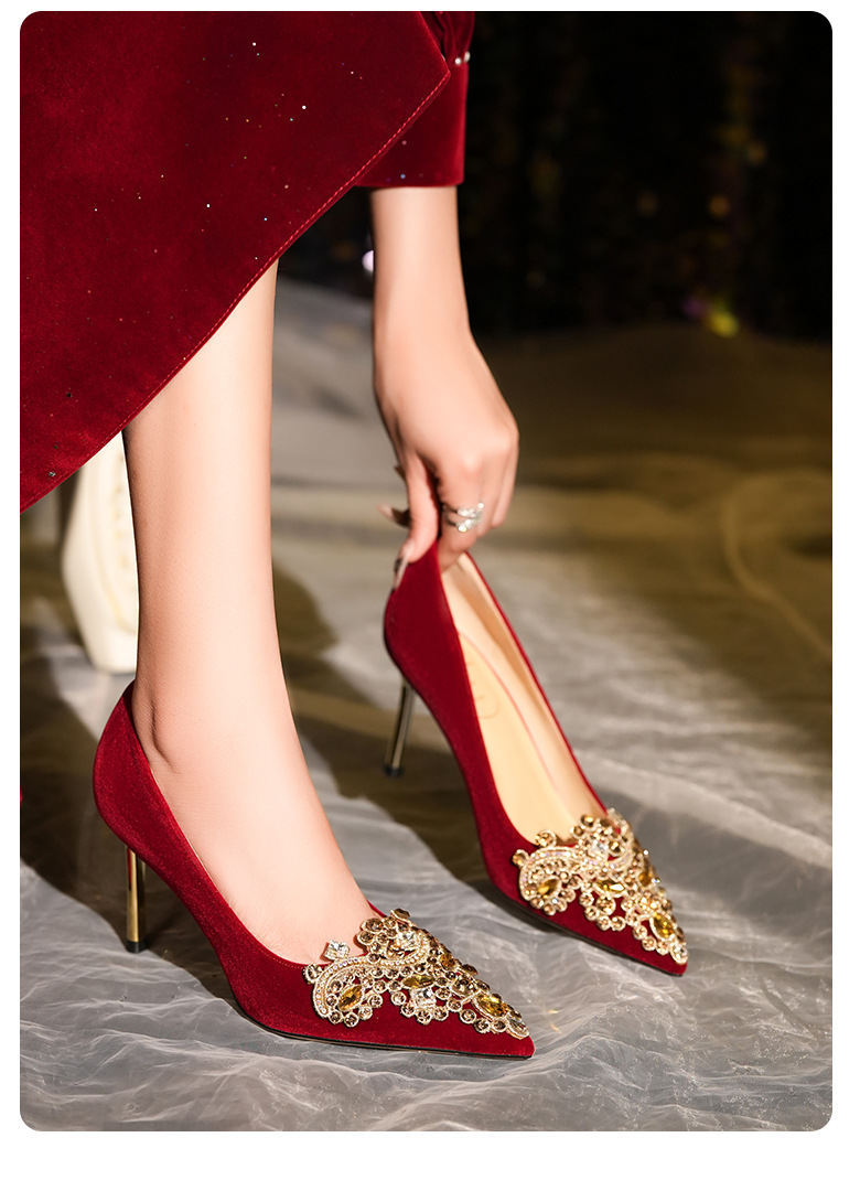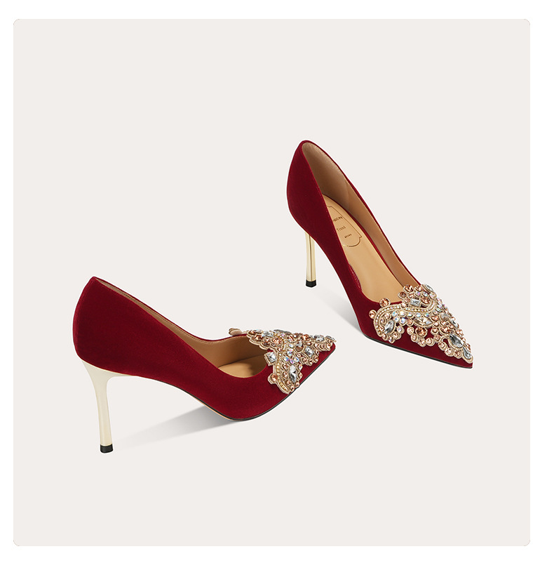 708-35 양피 라인 석 웨딩 슈즈 2023 새로운 신부 신발 크리스탈 디자인 감각 뾰족한 스틸레토 힐 하이힐 여성스토어 가기