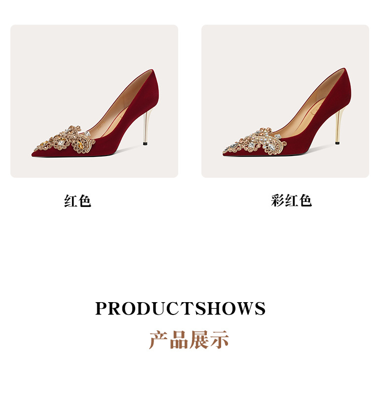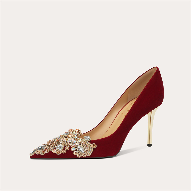 708-35 양피 라인 석 웨딩 슈즈 2023 새로운 신부 신발 크리스탈 디자인 감각 뾰족한 스틸레토 힐 하이힐 여성