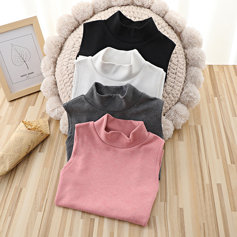 실크 울 벨벳 조끼 여아 따뜻한 민소매 탑 가을과 겨울 하프 하이 칼라 베이스 셔츠스토어 가기