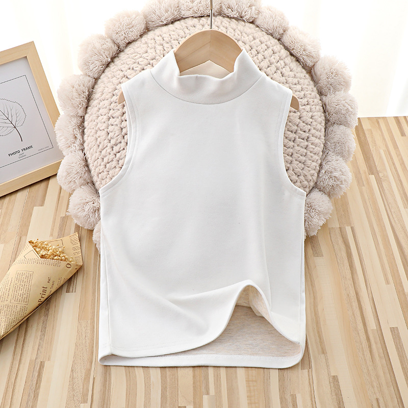 실크 울 벨벳 조끼 여아 따뜻한 민소매 탑 가을과 겨울 하프 하이 칼라 베이스 셔츠