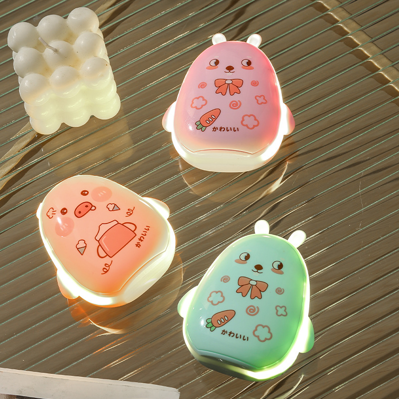 2022 새로운 만화 USB 충전식 전기 히터 소녀 휴대용 애완 동물 토끼 돼지 채우기 빛 아름다움 거울 손 따뜻한