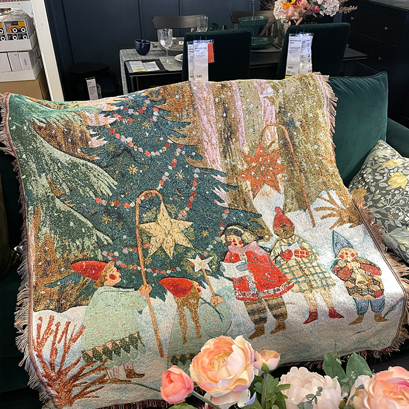 미국 복고풍 만화 소파 담요 면 담요 따뜻한 크리스마스 거실 렌탈룸 캐주얼 담요 소파 타월스토어 가기