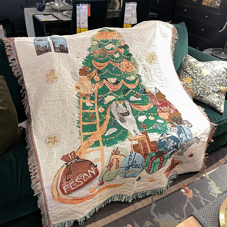 미국 복고풍 만화 소파 담요 면 담요 따뜻한 크리스마스 거실 렌탈룸 캐주얼 담요 소파 타월