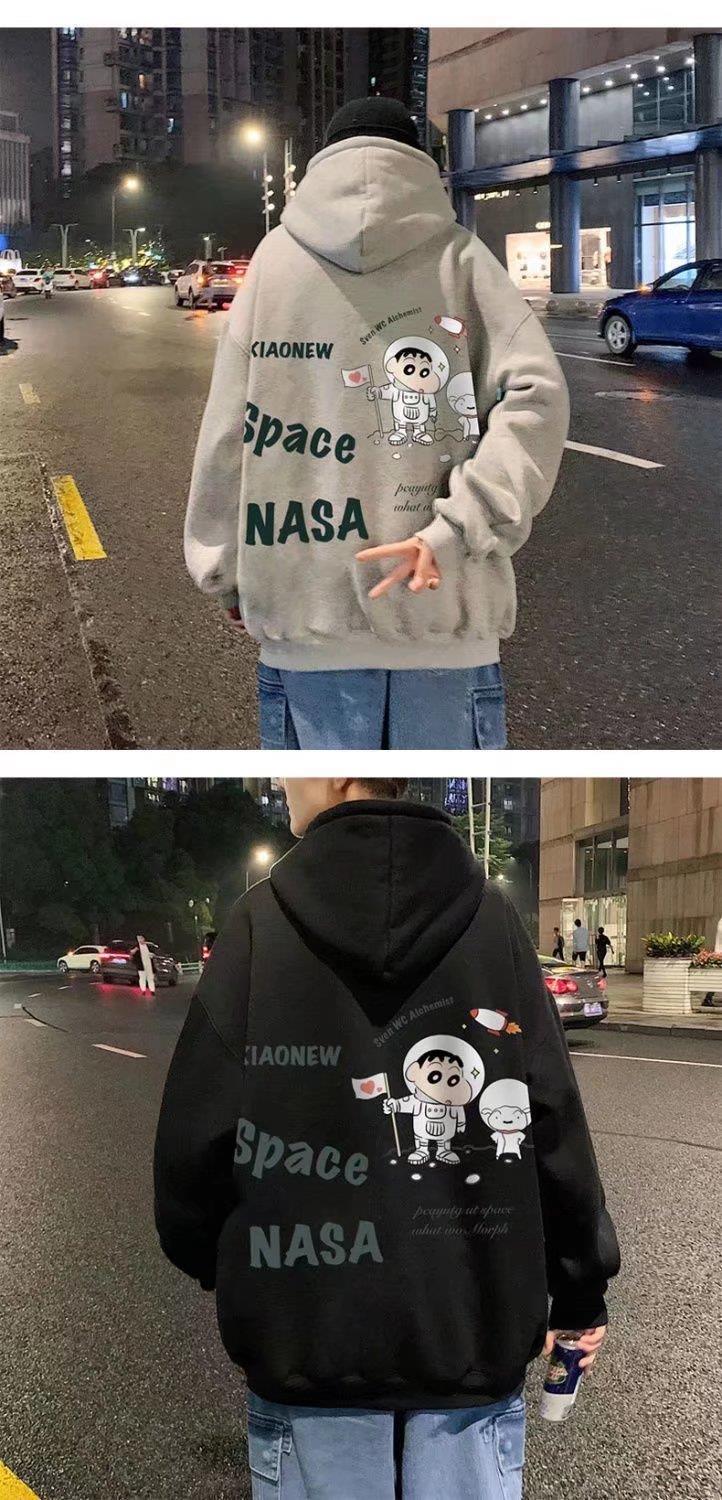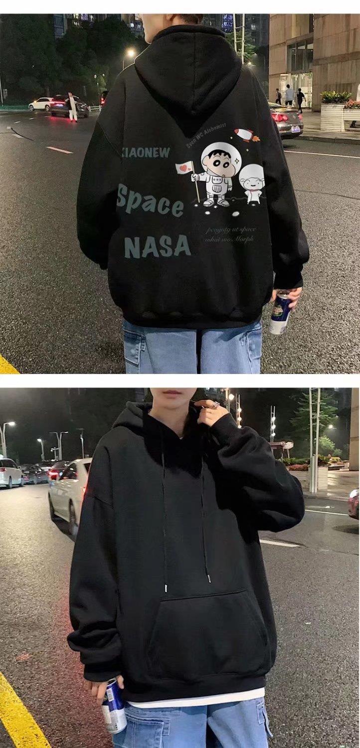 만화 애니메이션 프린트 후드 스웨터 남자의 일본식 풀오버 중립 스타일 봄과 가을 느슨한 스포츠 까마귀
