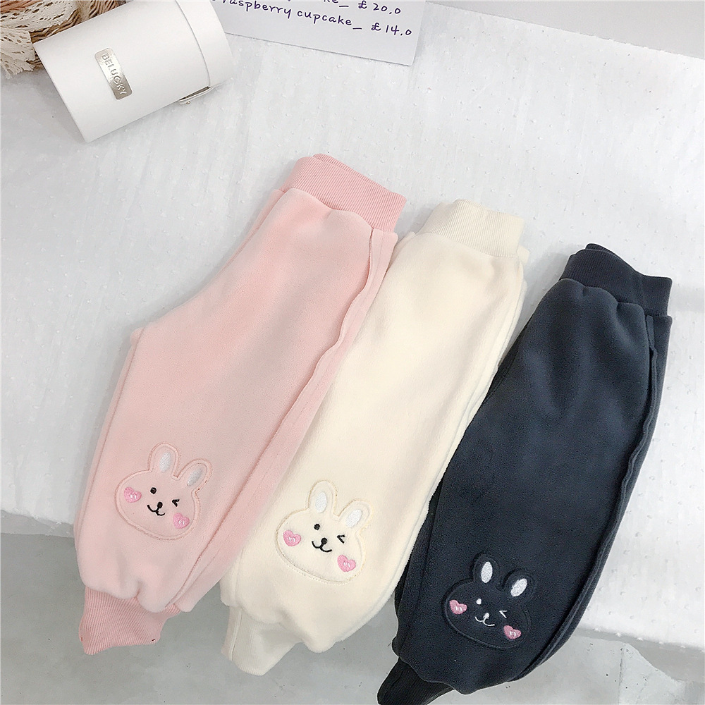 여아 기모 바지 가을과 겨울 어린이 두꺼운 원피스 양털 청바지 여성 아기 겨울 아웃웨어 한국 스타일 트렌디 바지