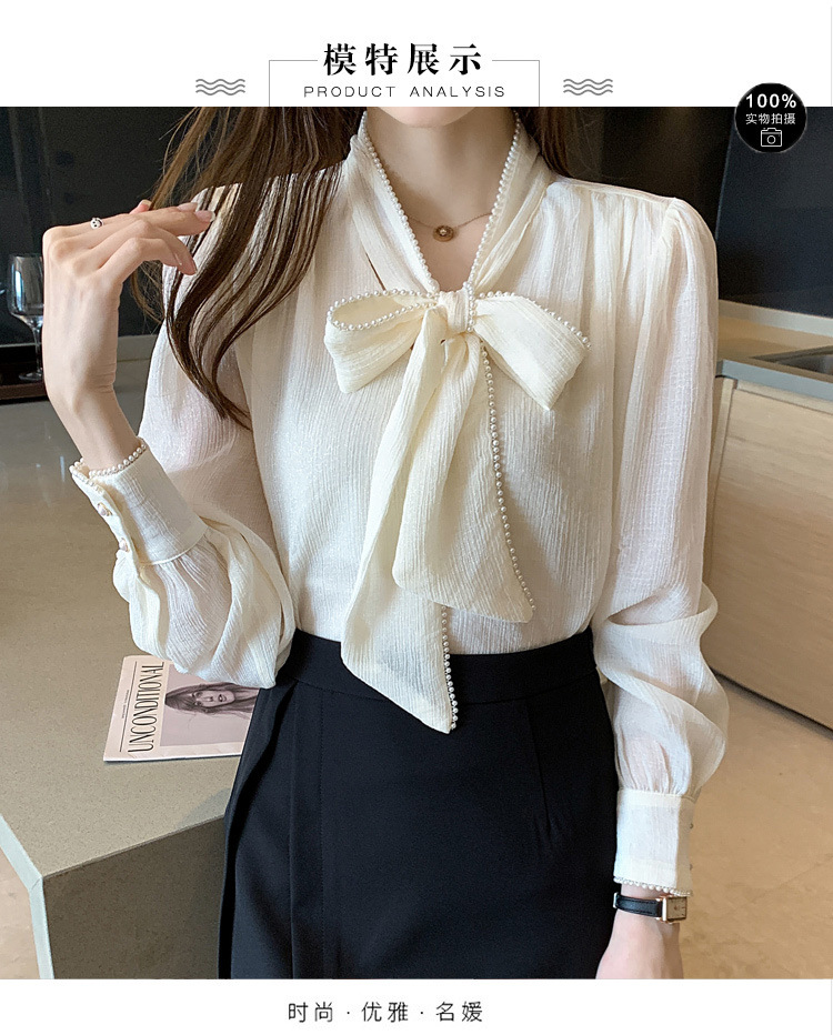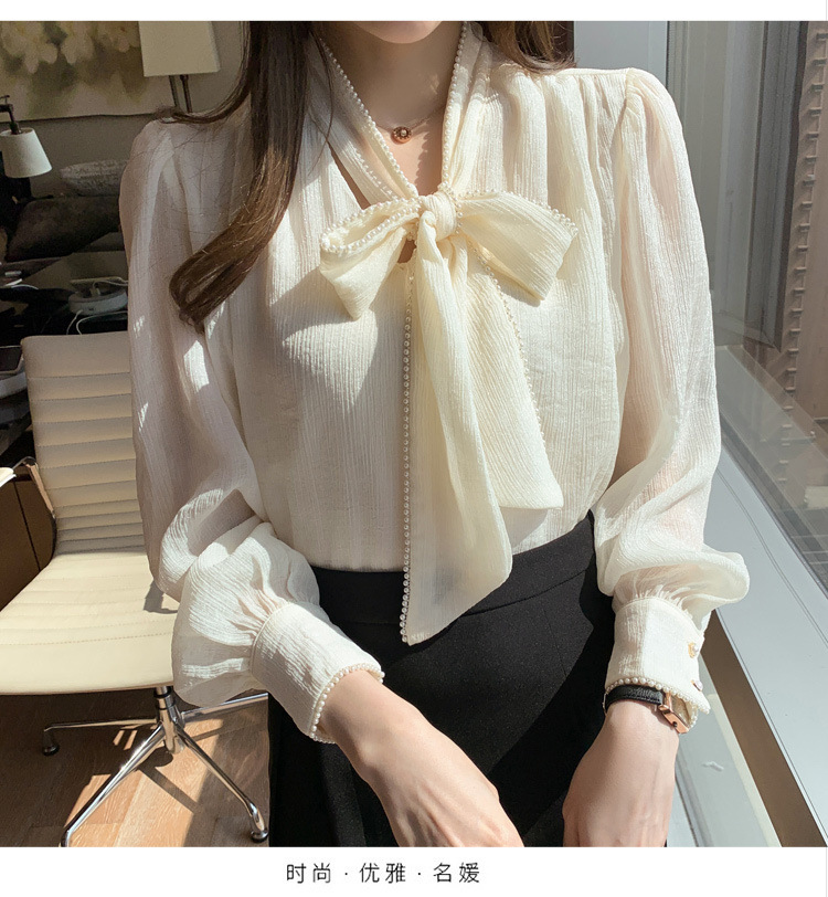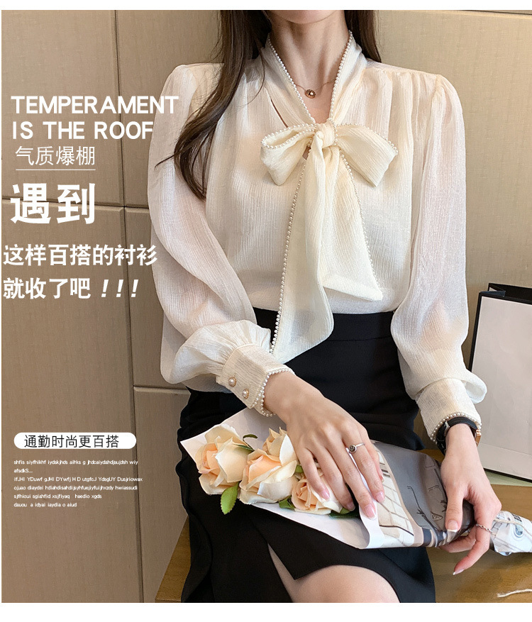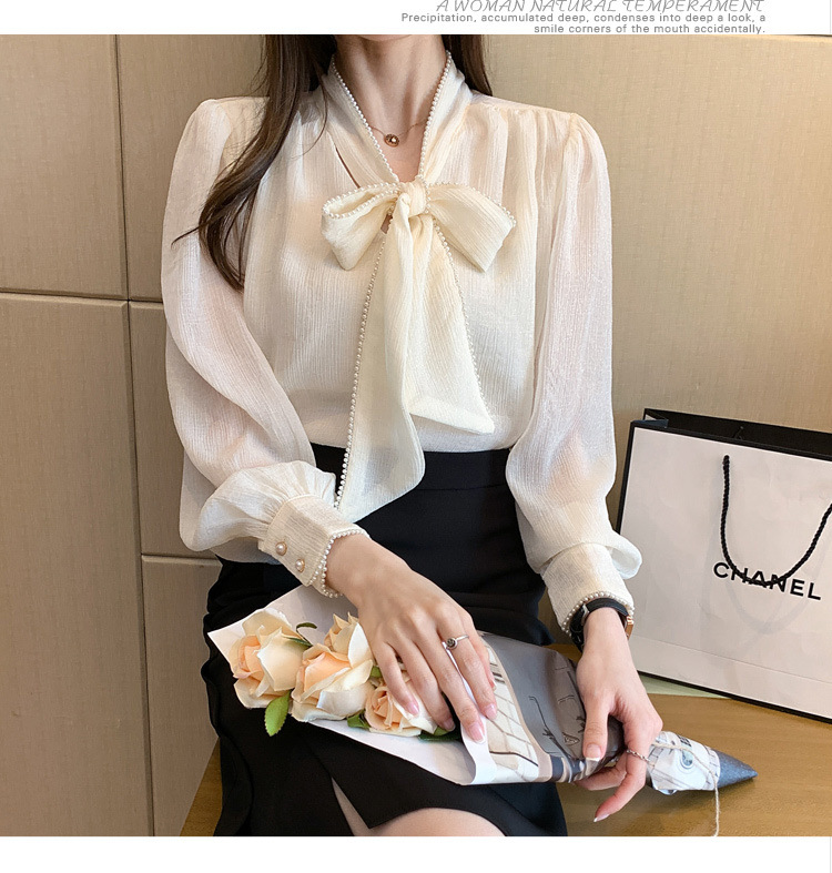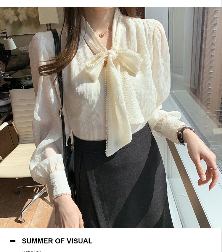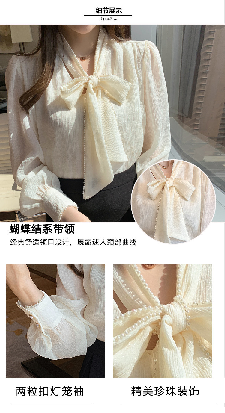 2022 봄 신상품 활 레이스 업 레트로 프랑스 쉬폰 셔츠 베이스 착용 세련된 긴팔 탑 여성용스토어 가기