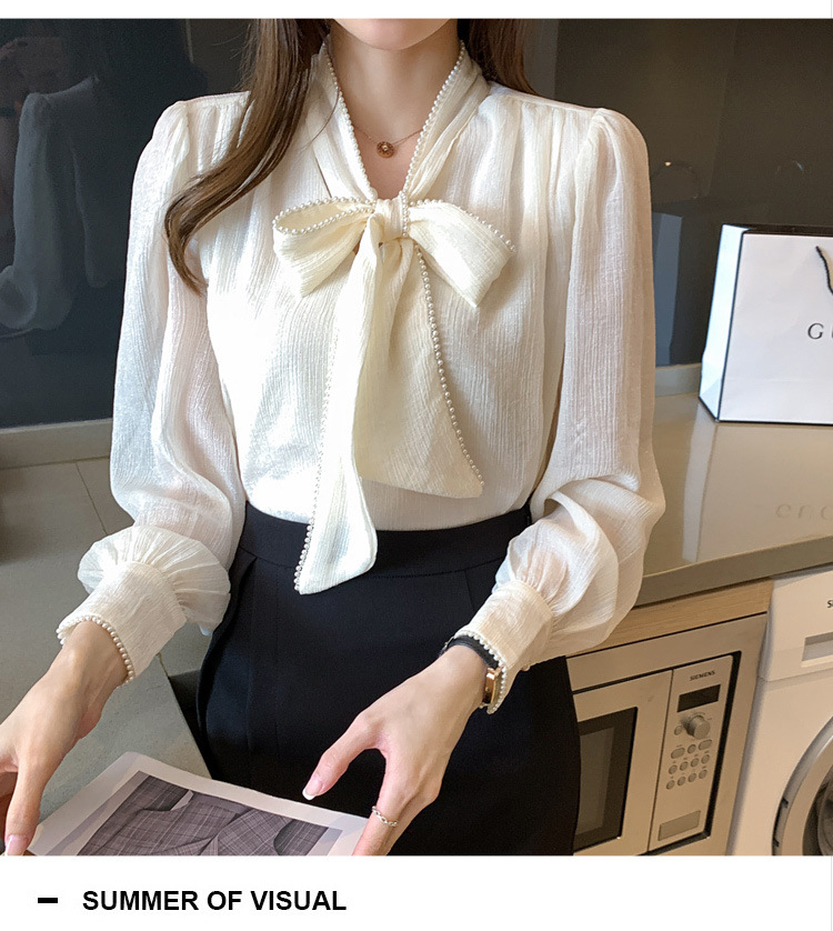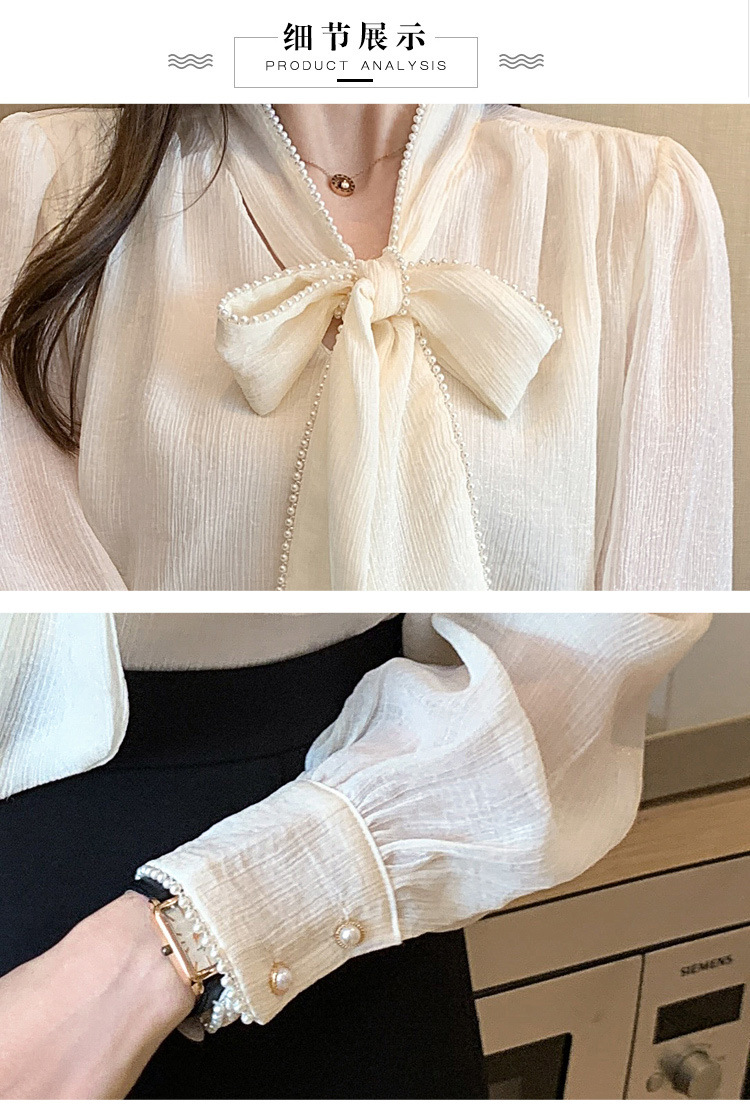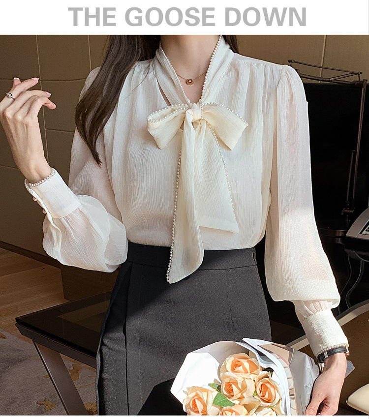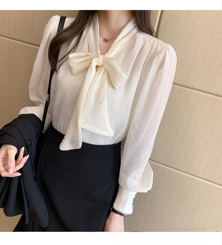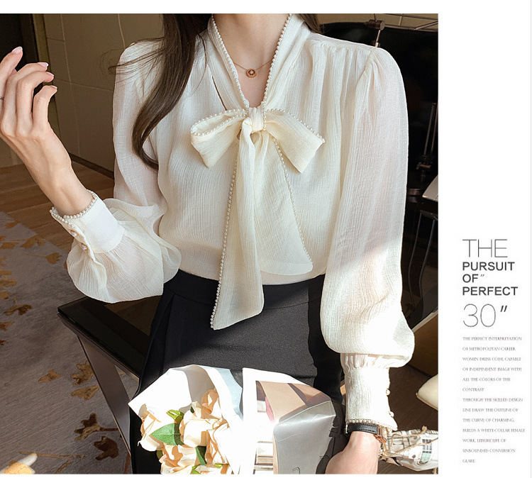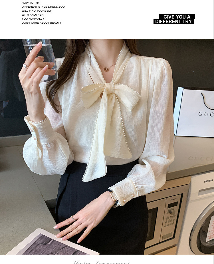 2022 봄 신상품 활 레이스 업 레트로 프랑스 쉬폰 셔츠 베이스 착용 세련된 긴팔 탑 여성용스토어 가기