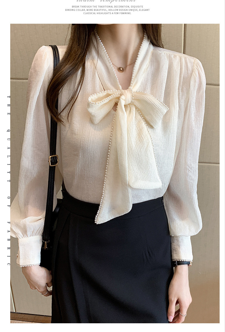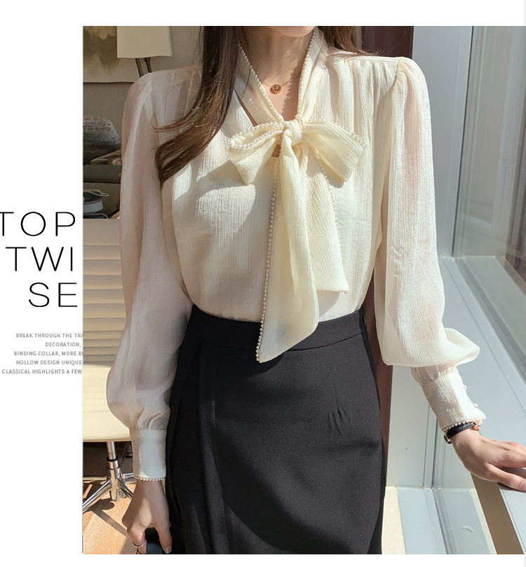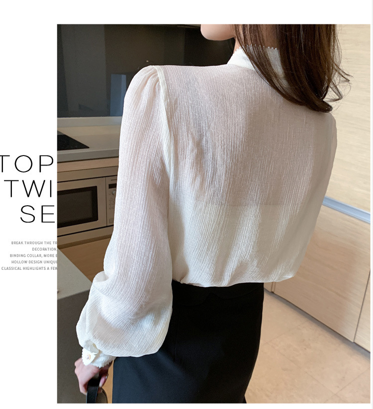 2022 봄 신상품 활 레이스 업 레트로 프랑스 쉬폰 셔츠 베이스 착용 세련된 긴팔 탑 여성용