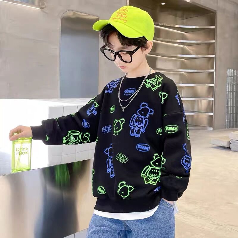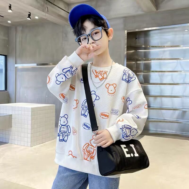 아동복 소년 운동복 2023 봄, 가을 어린이 라운드 넥 탑 중형 및 대형 소년 유행 긴팔 풀오버 티셔츠스토어 가기