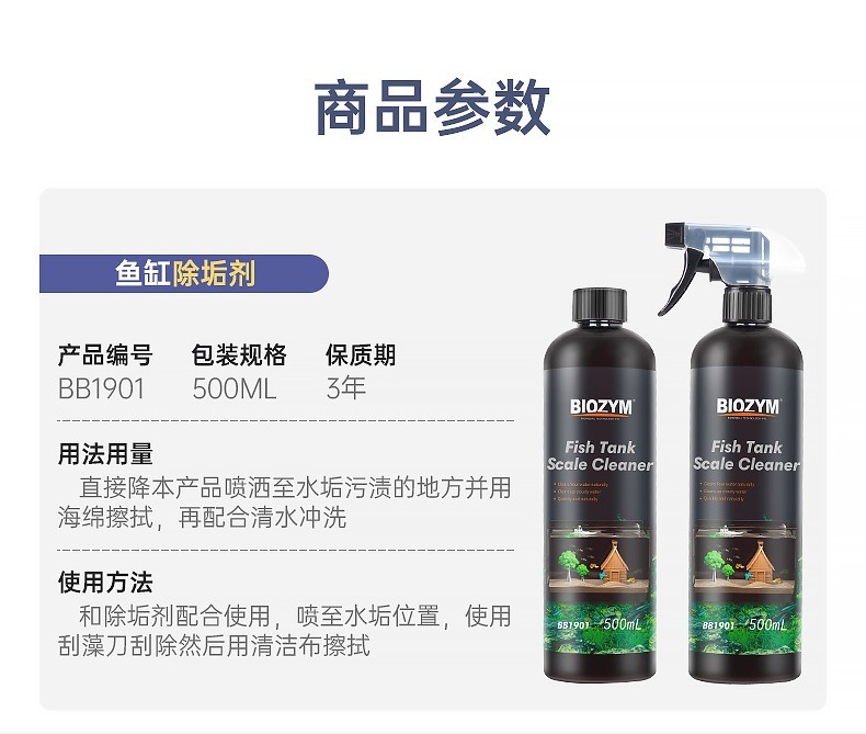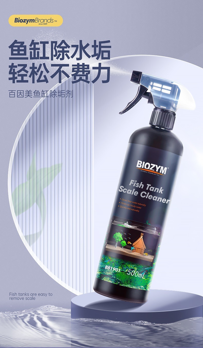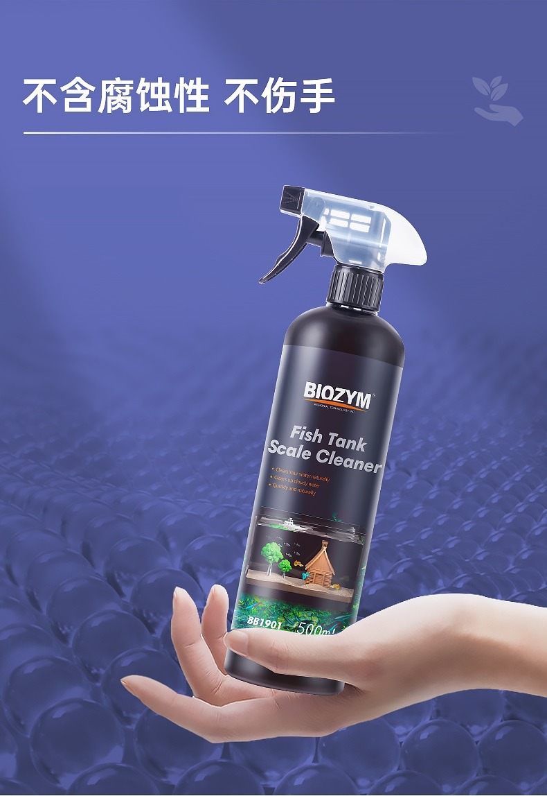스케일 제거제가 함유 된 BIOZYM Baiyinmei 어항 물 얼룩 유리 냄새 제거 세제 오염 제거 및 스케일 제거 청소